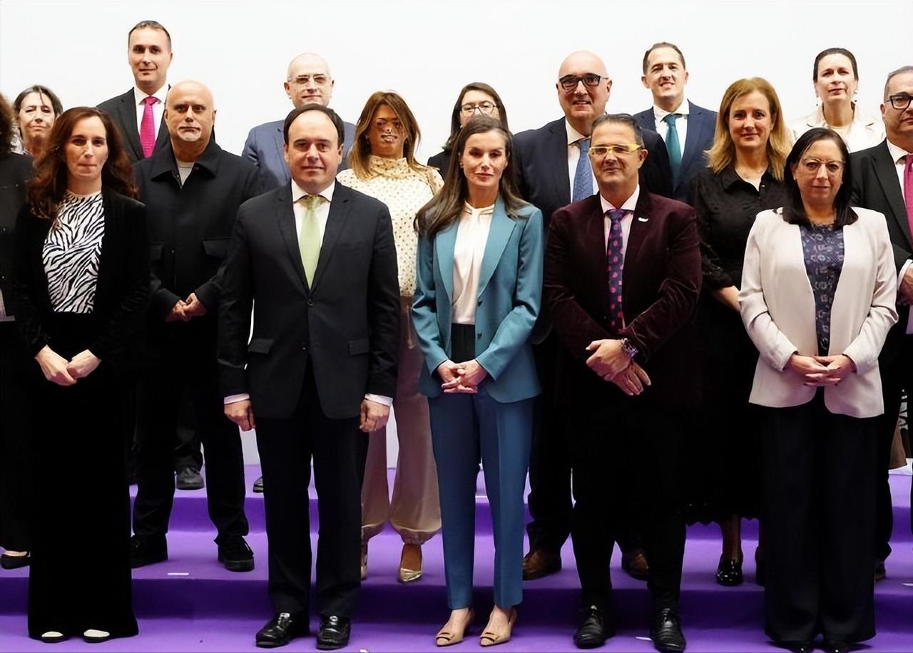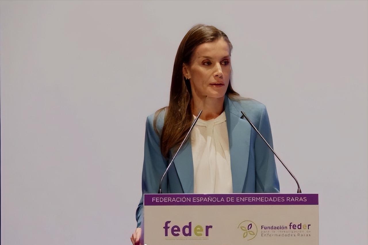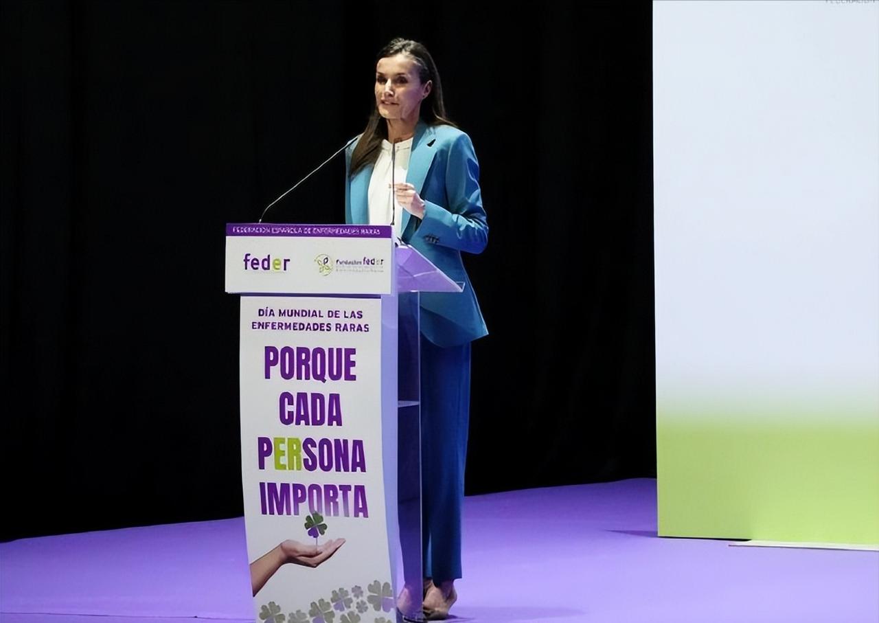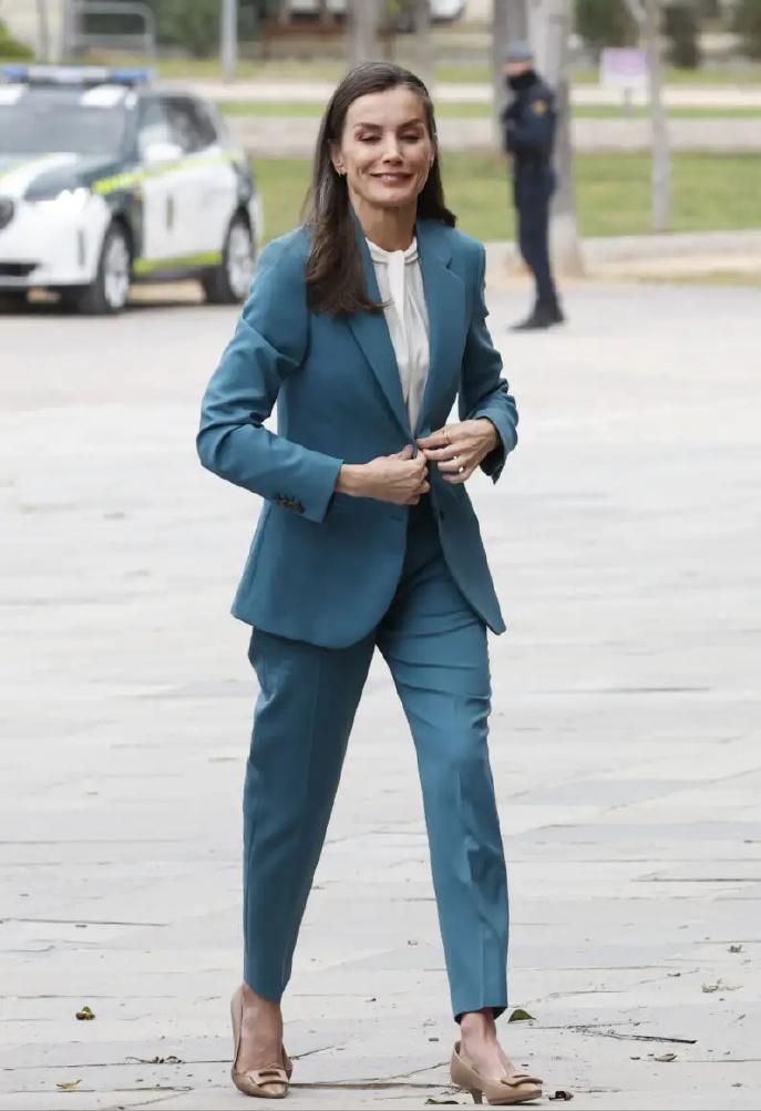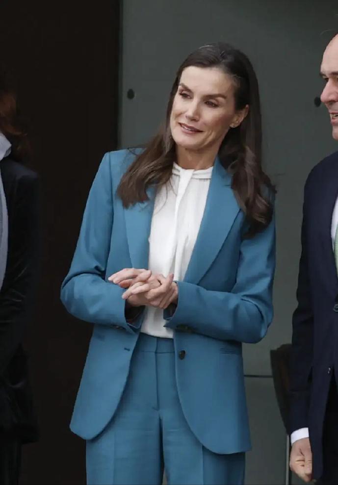 3月3日,西班牙莱蒂齐亚王后作为西班牙罕见病协会名誉主席,在卡斯特利翁出席了世界罕见病日的活动! 莱蒂齐亚王后穿着一袭松石蓝职业装,知性干练。作为曾经的最美女主播,莱蒂齐亚王后即便嫁入王室20几年,但是职业女强人的气质依旧相当明显。 虽然身材依旧保持得非常好,但是年过半百了,莱蒂齐亚王后的头发依旧清晰可见多了不少白发。不过家庭幸福,费利佩国王宠妻达人,两个公主女儿也是优秀漂亮,莱蒂齐亚王后白发横生也不染,选择优雅的老去,也是相当自信,也很有底气!