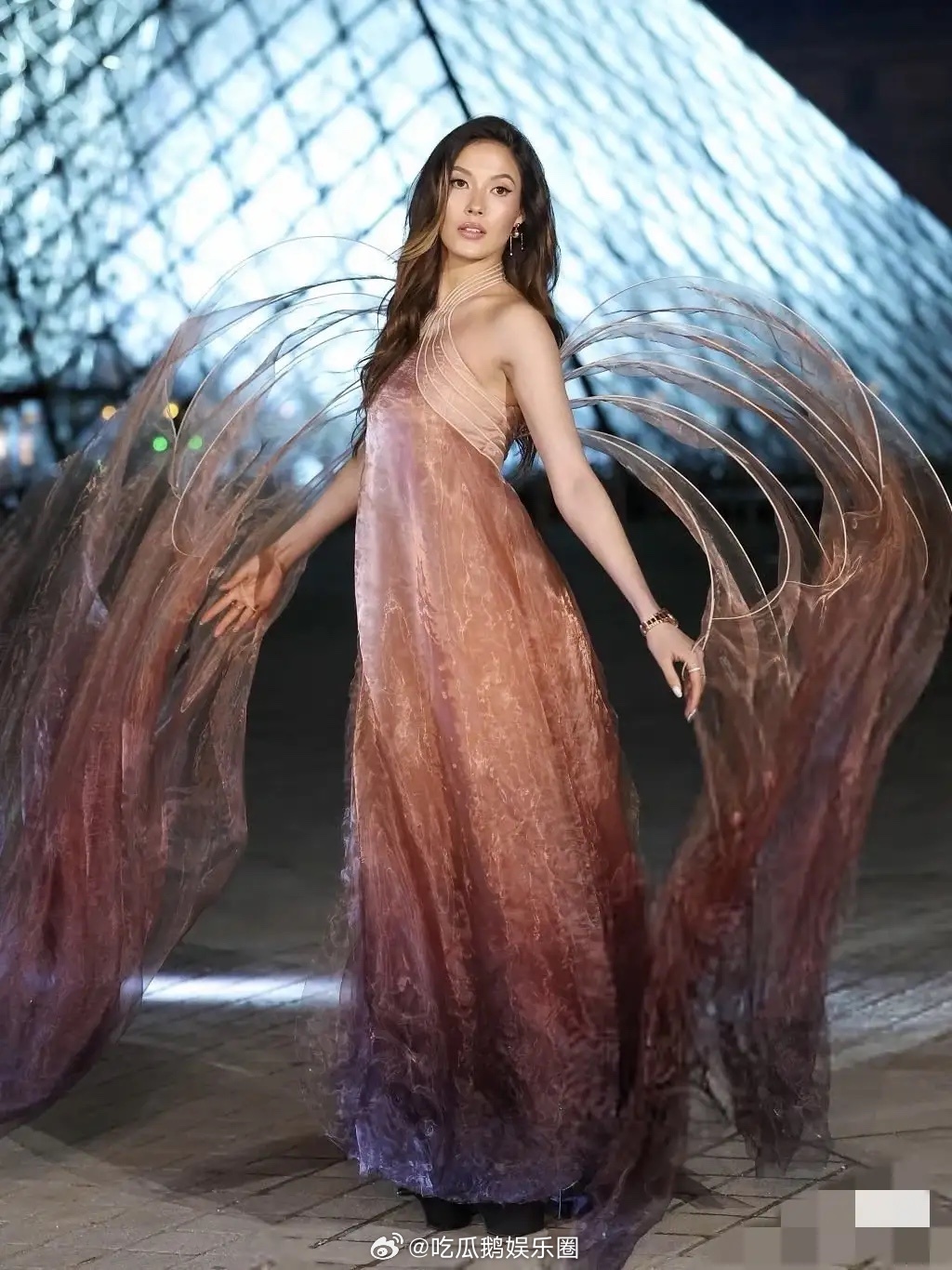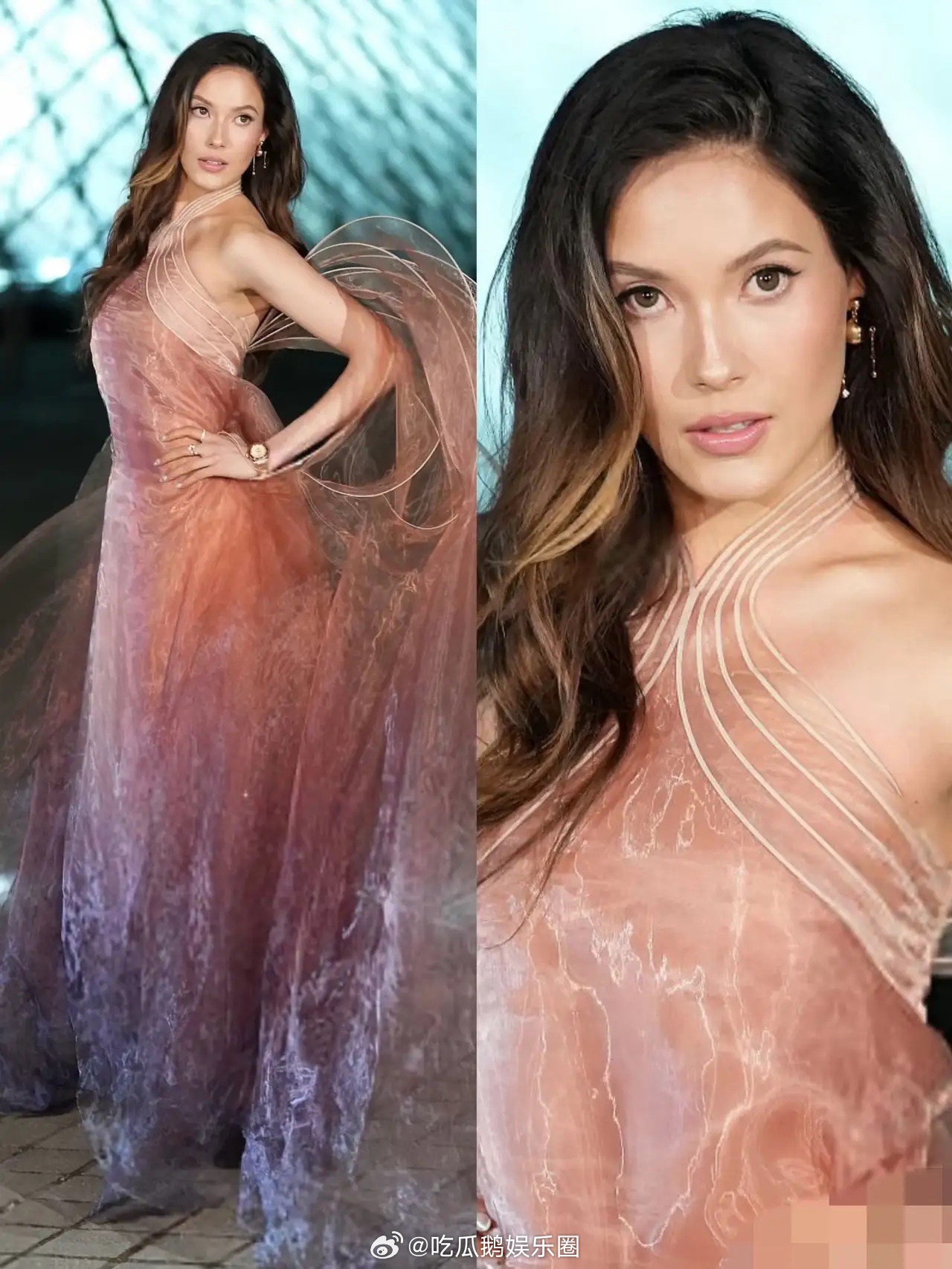 谷爱凌参加罗浮宫晚宴,她的裙子挺好看的,脸上妆容精致,不像以前那么浓了,尤其口红抹得特别淡,就像没抹似的,是粉色的,一眼望去像是亚洲人,不像是外国人。