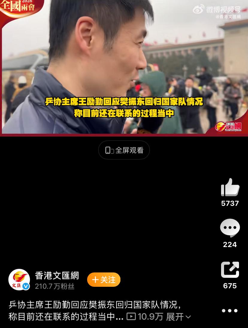 【王励勤回应樊振东归队问题,归期不定!】 近日,中国乒乓球协会主席王励勤在接受采访的时候,被问到樊振东什么时候回归国家队,王励勤称目前还在联系的过程当中!由此可见,樊振东依旧是归期不定,这样也是成为大家热议的话题! 随着樊振东远走德甲,马龙淡出,林高远静默,林诗栋不稳定,加上外协的强大,乒乓球男队面临的压力也是巨大的!因此,很多人寄希望于樊振东,希望他能够再次归来稳定局面!如今,王励勤作为掌门人回应归期问题,依旧是联系中,看来也是有些迷茫啊!