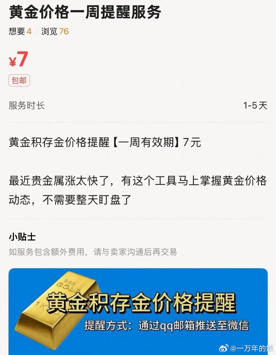 金价上涨催生提醒新副业金价焦虑被做成生意了全民都在关心黄金保值,盯盘耗时又费神。金价提醒服务顺势爆发,简单易做,成为当下最接地气的理财周边副业。