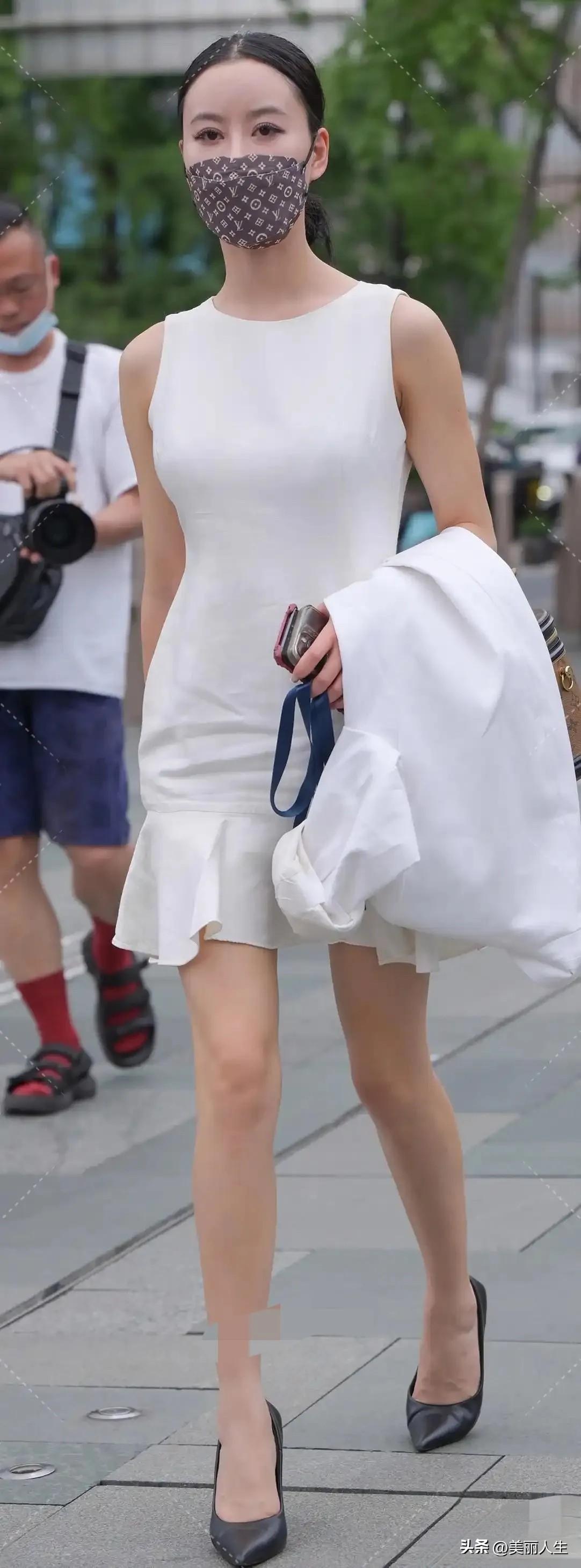 黑色细竖条纹西装内搭粉色吊带裙!这才是马年职场人该有的甜酷天花板。春日都市街