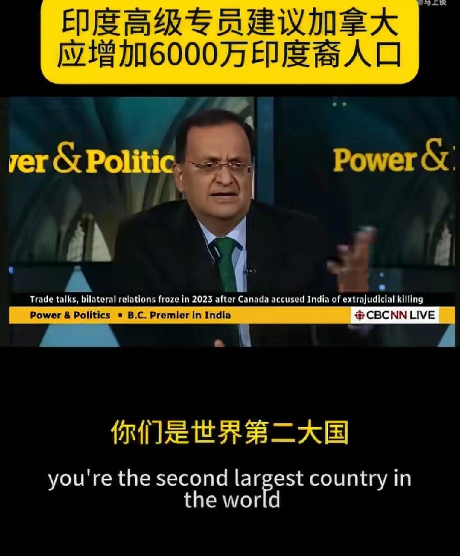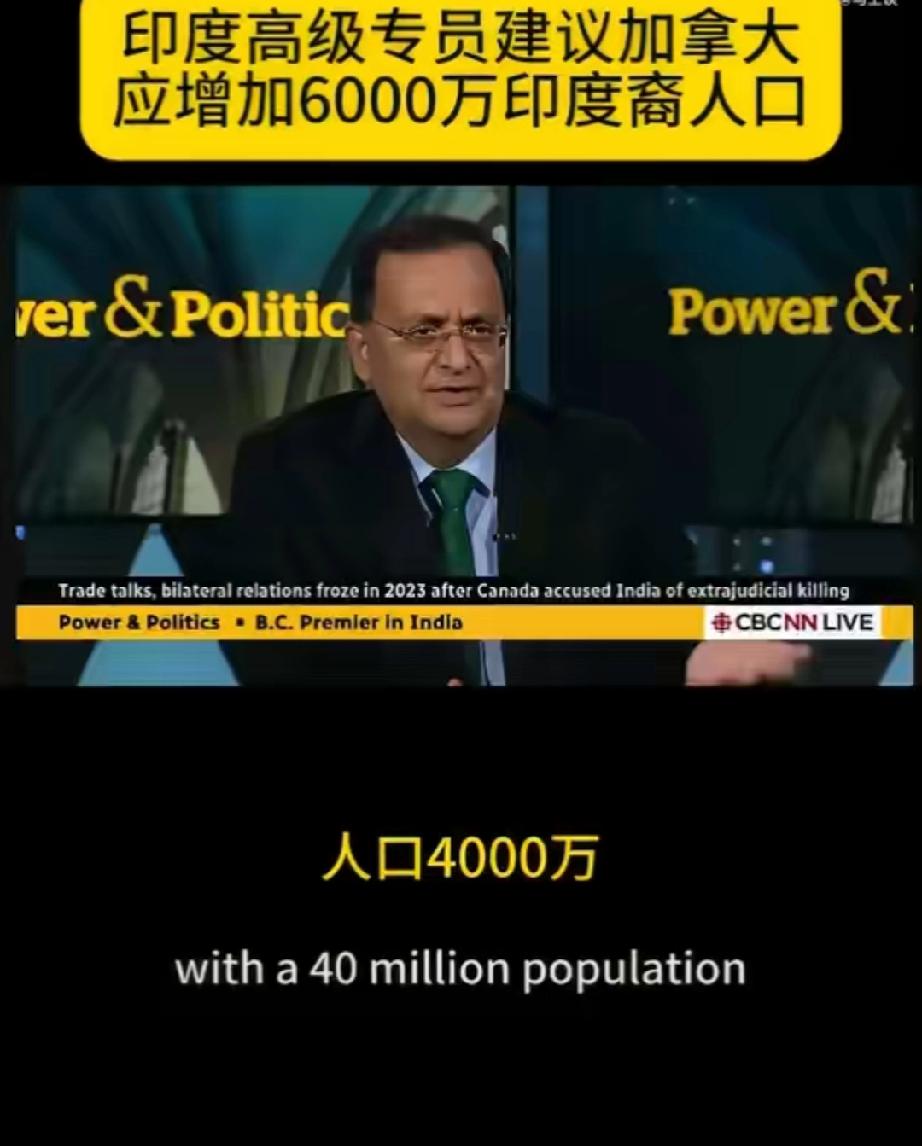 印度驻加高级专员建议加拿大应增加6000万印度裔人口:“印度庞大的人口,加拿大有丰富的资源,印度愿意将这部分人口借给加拿大。”[what] 印度驻加拿大高级专员Dinesh K. Patnaik表示,由于加拿大和印度的经济“互补”,加拿大应该欢迎 6000 万印度人来到该国。他称, “你们有我们需要的东西,我们也有你们需要的东西。”“例如,世界上第二大(地理面积)国家——人口 4000 万,至少需要超过 1 亿人口。”“你需要人来管理你的许多资源。”“我们有能力,我们有智慧,我们有才能,我们有资源。”帕特奈克指的是印度庞大的人口,印度愿意将这部分人口借给加拿大。印度人口潮 印度人口下降 海外条友说