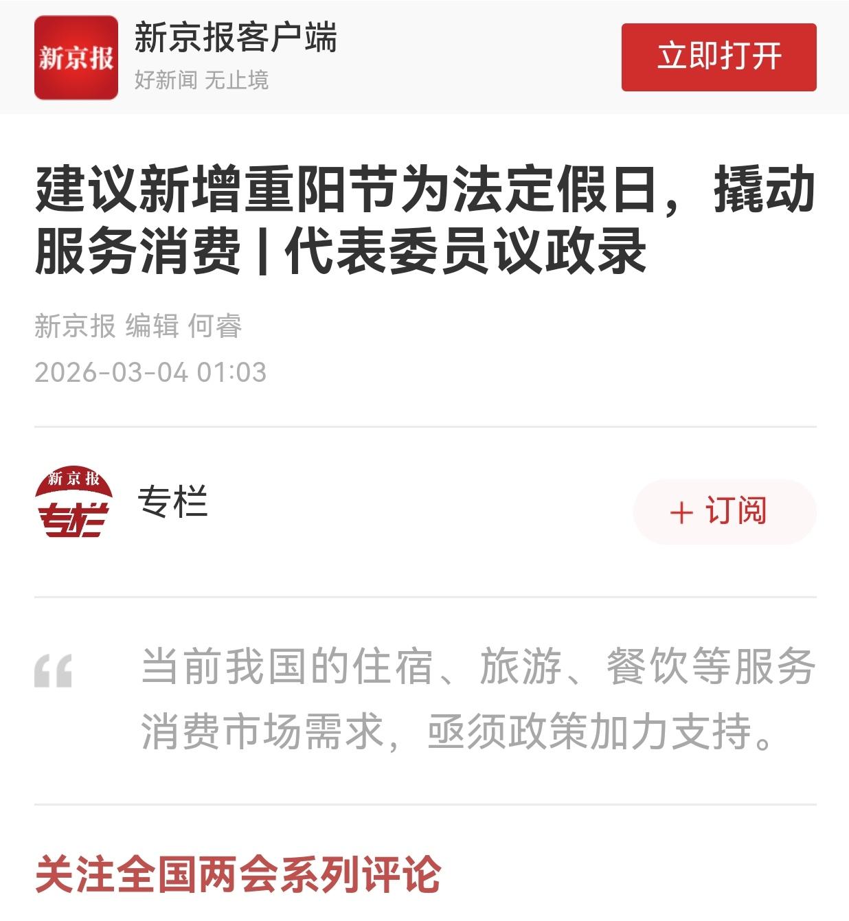 仅有“增加假期”,是否真能“撬动服务消费”? 根据3月4日《新京报》文章消息: 有代表委员提议“新增重阳节为法定假日”“增加下半年假期”等希望通过增加“假期”扩大“服务消费”。 听起来似乎很有道理,让大家通过假期参与假日消费,但是,实际上我们的消费不足真是或者仅仅是因为“缺少假期”“缺少消费时间”吗?