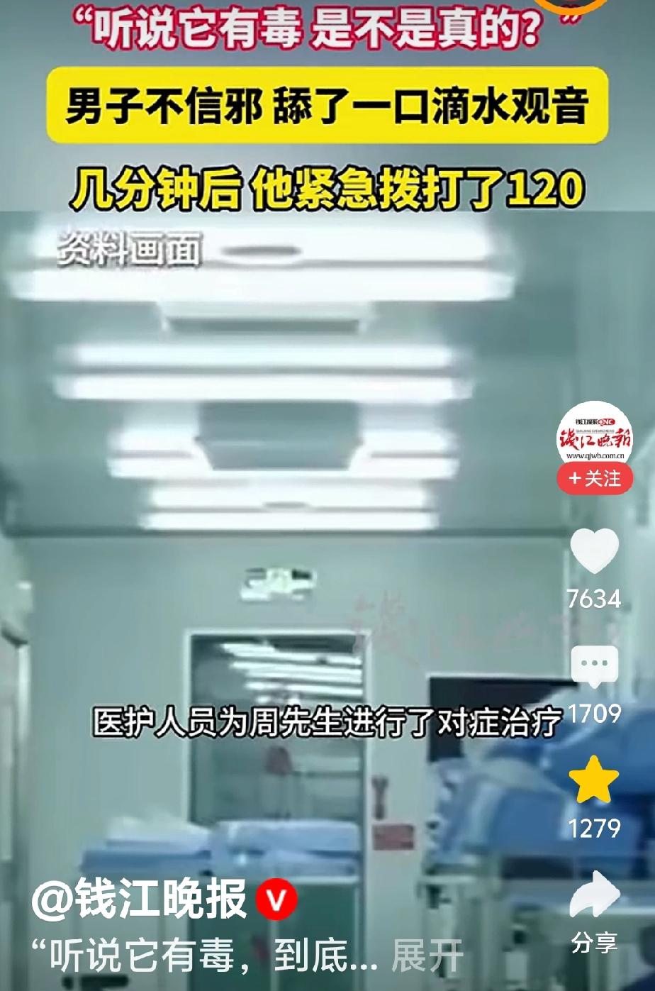有毒没毒,尝尝便知。真是个狠人啊! 都说滴水观音有毒,有的人就是不信。不信也不要紧,有敬畏心就可以了。但是有人就是不信邪,非要吃一口尝尝。 最近,浙江杭州,一位男子搬新家,朋友前去祝贺,送给他一盆绿植,一盆漂亮的滴水观音。他看着满心欢喜,每天闲时就去摸摸、闻闻。忽然心血来潮,都说它有毒,这么好看的盆栽,是真的吗? 一时心痒难耐,于是他拿刀子割开一片叶子,挤了点汁液用嘴尝了尝。 刚开始发现没有什么味道,结果,只几分钟的时间,就感觉喉咙有灼烧感。于是他一边往厕所去催吐,一边让妻子打120。 幸亏送医及时,经过医生的一系列操作,抢救室护理常规、吸氧、心电监护、监测血压;完善血常规、凝血功能、急诊生化、心电图;洗胃排毒等对症治疗。该男子的中毒症状很快得到了有效控制。 这会知道滴水观音真的有毒了。但是,用这样的试毒方式太危险了!今后还是尽量相信前人的经验,尽管这种质疑的精神很可贵,我认为还是生命更贵点。图片来自网络,侵删。