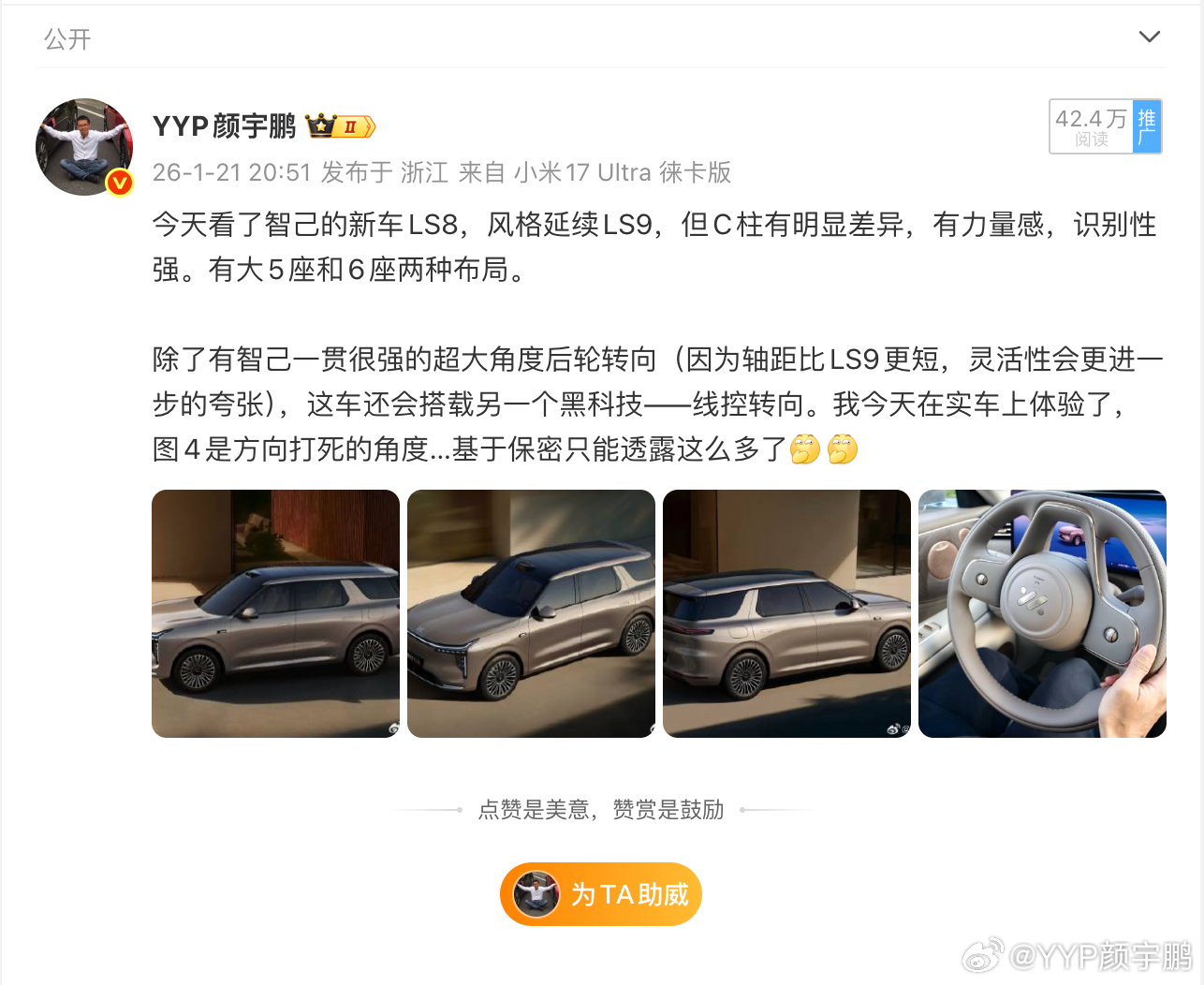 收到确切风声,智己 LS8 要上线控转向了。我们有台智己 LS9,对 “大车+后轮转向” 这个组合带来的超灵活体验印象特深。平时在老城区穿街走巷、商场里掉头,压力全无。现在LS8在“大车+后轮转向”的基础上,再加上线控转向,意味着不但车灵活,人对车的操控动作也会更轻松。真心推荐那些对开大车有顾虑的朋友,等智己LS8出来,大概率会刷新你对大型 SUV 驾驶感受的认知 听不懂的汽车黑话什么是线控底盘