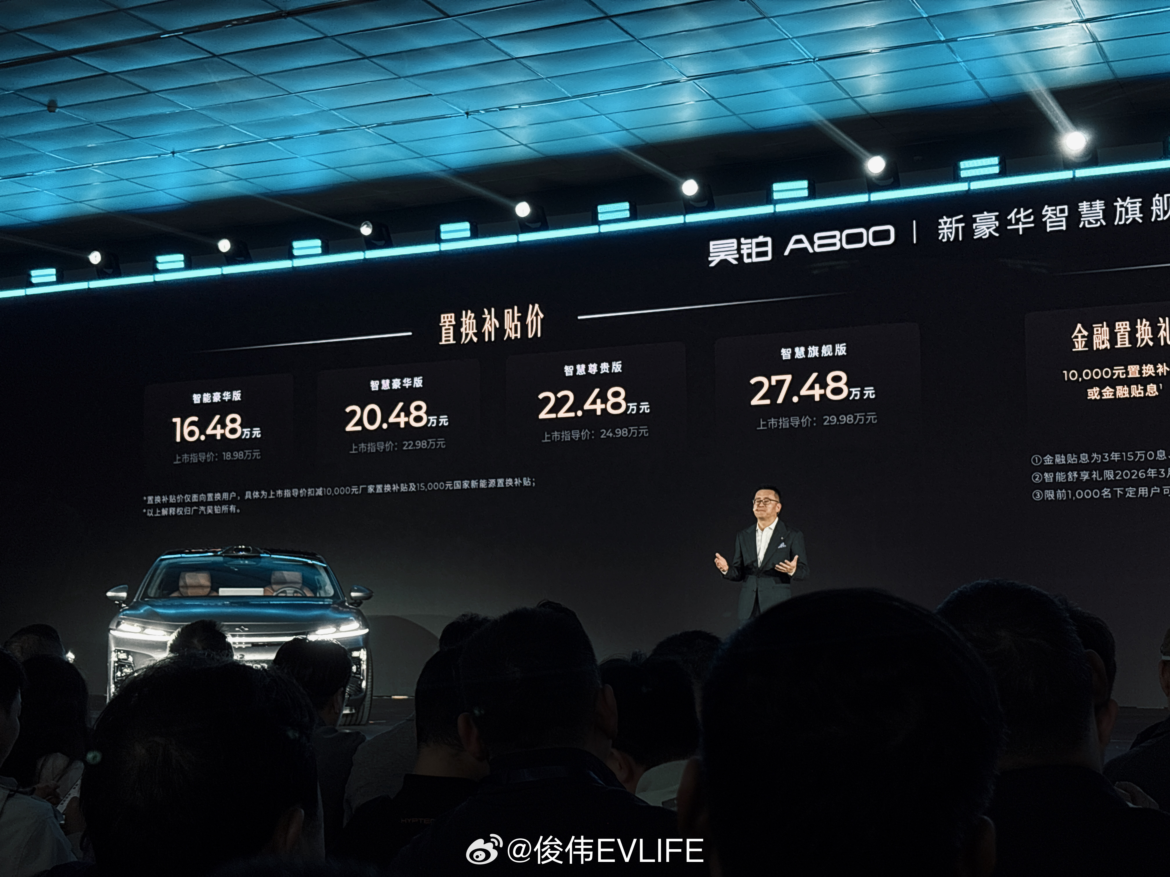新豪华旗舰昊铂A800上市补贴后16.48万起