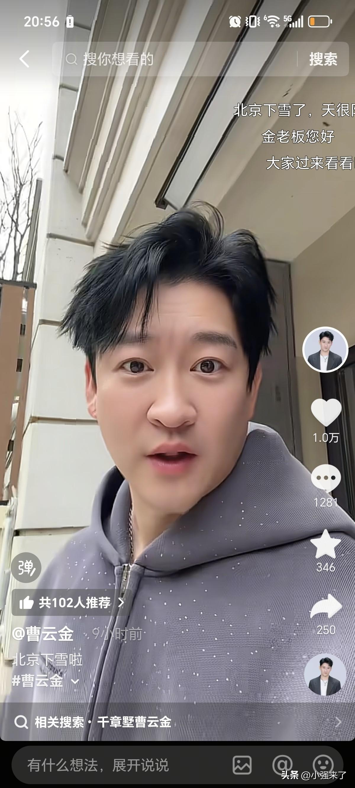 3月4号,曹云金更新视频说北京下雪了,而且很大,却意外曝光了几点信息呀[捂脸][捂脸][捂脸]。 第一,网友通过附近建筑物,确定了是北京千章墅,价值在上千万左右,虽然在通州区,但是距离机场和高速很近,对于经常出差的人来说,太合适不过了。 第二,虽然别墅配套了单独的花园,可曹云金欣赏不了,重新给翻修了,改造成了哥几个夏天喝啤酒吃烧烤的场所。(墙上依然保留着,开发商安装的室外喷头。) 第三,可能忙于事业,对生活上的细节过于疏忽了,小院里的自来水管没有加装保温材料,北方的冬天很冷,而且在室外,估计会冻裂了。