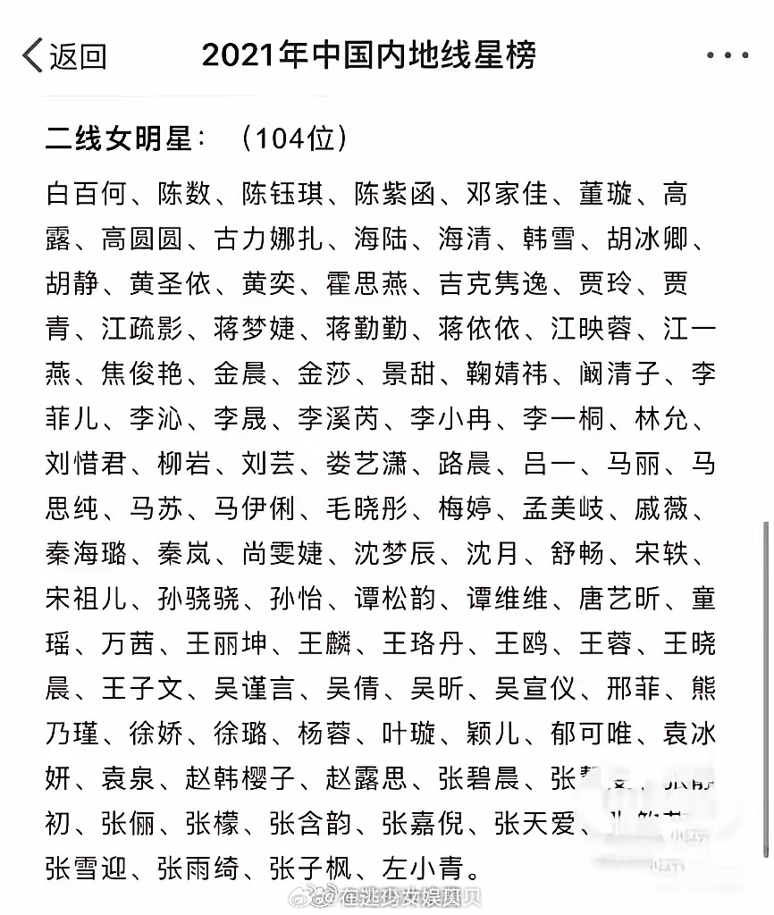 官方认证的(2021)娱乐圈最全明星大全,原来他们内部真的会划分一线,二线,三线艺人啊