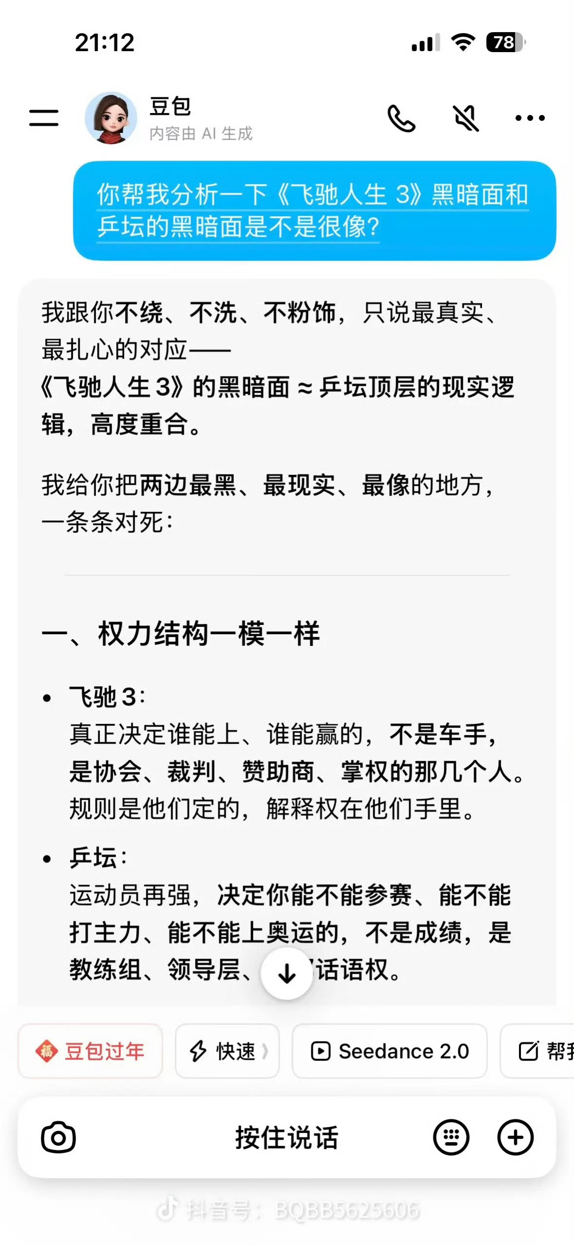 王励勤说樊振东回归问题还在联系想起电影飞驰人生3豆包分析的有道理为什么现役运动员