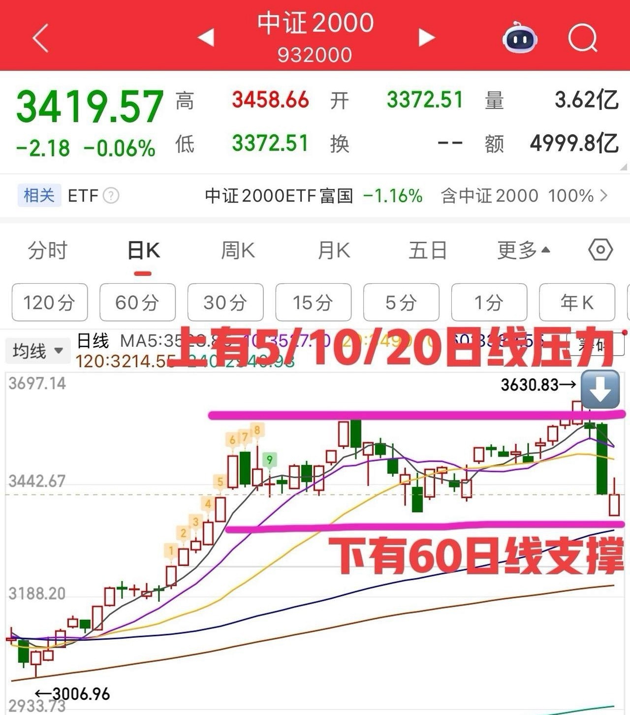 2026.3.4周三收评: 个股三连跌,后续怎么看? 上证指数日、周线顶背离周期中,调整不会这么快结束,从4197开始的向下调整,力度还是比较大的,当前还未看到止跌迹象,止跌的基础条件是出现中枢,目前还处于构建中枢阶段,大概率就是在60日线附近,会有个反复拉扯的过程,所以短线看盘的方式也是比较简单,上看5/10/20日线压力,下看60日线或4002点支撑。节奏上亦是如此,个股看中证2000指数,通过上下均线支撑压力做高抛低吸的节奏! 但注意仓位的管理,短期大环境不好的条件下,要控制仓位。 个股连跌3天,今天跟明显有点跌不下去了,看中证2000指数就知道了,今天是小跌的,所以个股今天的杀伤力没有昨天前天那么强,这就说明短线超跌,有点跌不动了,后续反弹也就跟快会来。不过要知道当前仍处于下跌阶段,所以反弹该干嘛干嘛,多做高抛低吸降低成本。 总之,个股的节奏就看中证2000指数或全a,短线看60日线的支撑,往上看5日线压力,注意一下节奏和仓位就可以。 参考案例关注“我的关注” 个人观点,仅供参考!不作为投资建议!