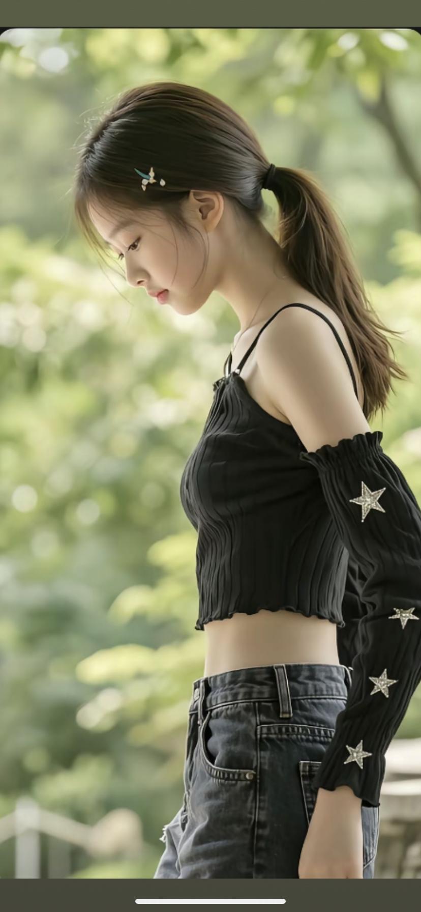 青丝系发,星眸映绿。