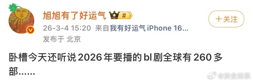是小四的审美邓为上一部是《风月不相关》,2025.9.18杀青的,到2026.3