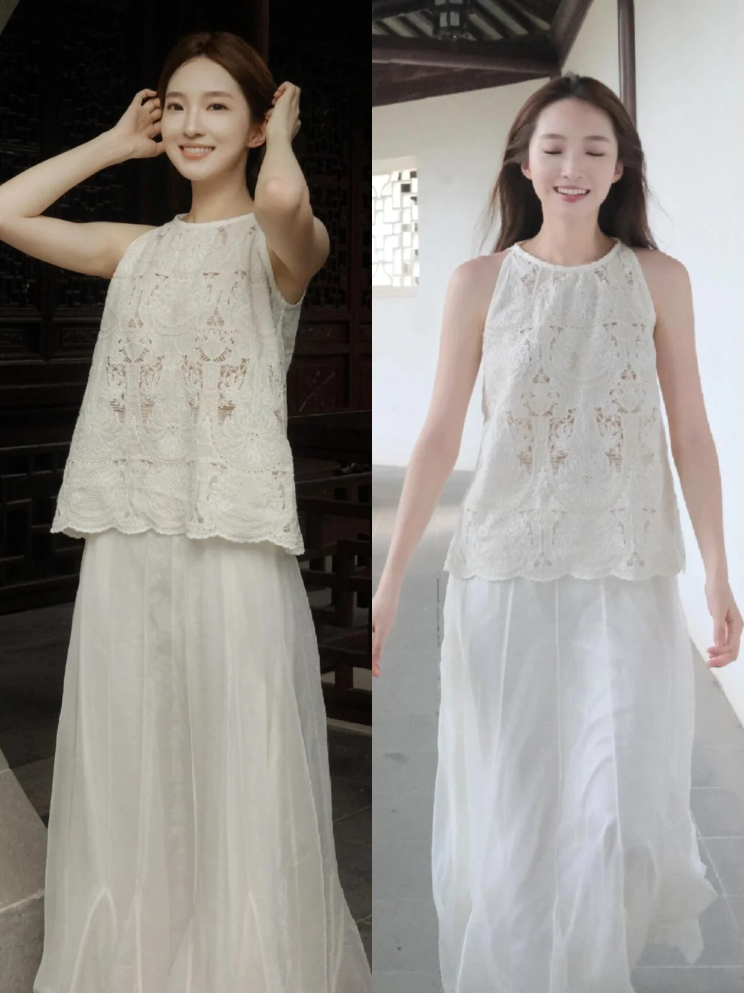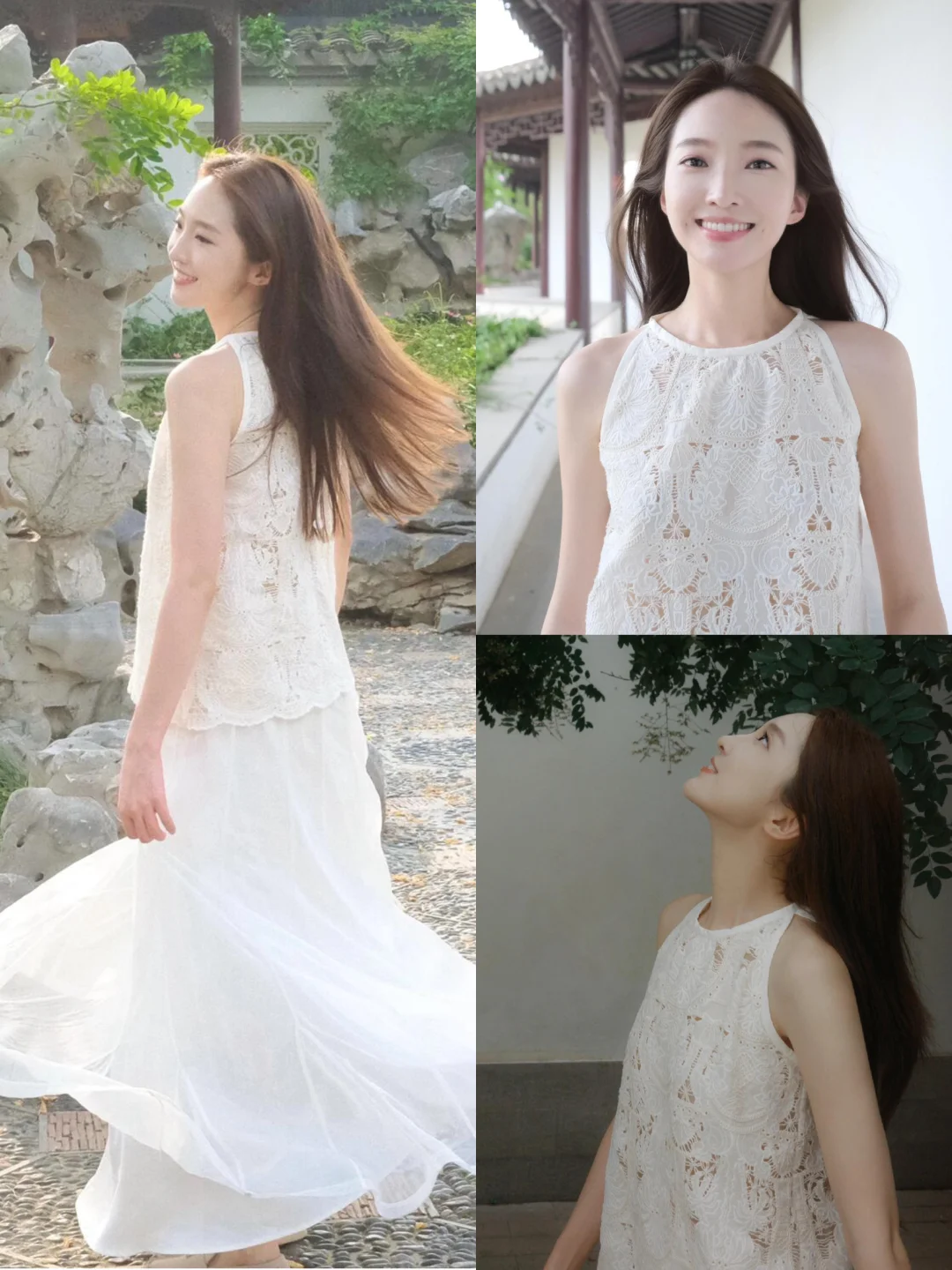 又刷到凯雯这两组度假随拍啦,整个被法式氛围感击中!!这才是度假该有的样子啊🥀露背挂脖系带印花长裙搭配草帽,完全南法海边的慵懒女主既视感,风一吹裙摆和发丝一起飘,像是从法国电影里走出来的女主角🎬白色蕾丝吊带+百褶半身裙,软软糯糯又带着一点复古少女感,配一双乐福鞋慵懒又精致。两套风格完全不同,但都有同一种味道:松弛、浪漫、自在、不费力,这就是法式大女主的魅力吧!! 图片cr:杨凯雯