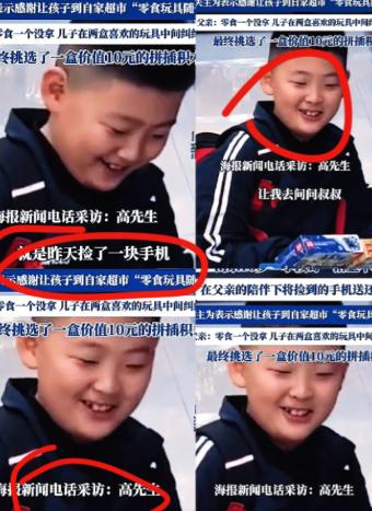 山东潍坊,一10岁男童捡了一部手机,联系上失主后,男童和父亲一起将手机送回给了失主,没想到失主开了一家超市,为了表示感谢,失主让男童到店里零元购,结果男童的做法让人感慨小孩子家教太完美了。 麻烦看官老爷们右上角点击一下“关注”,既方便您进行讨论和分享,又能给您带来不一样的参与感,感谢您的支持! 山东潍坊有个10岁男孩,放学路上在路边看到一部手机,不是那种随手一瞥的发现,而是能看出主人肯定会着急的那种。 他没想着先拿回家,也没装作没看见,第一反应是把情况告诉身边的父亲,让大人一起把这事办稳当,避免好心办出岔子。 父子俩当场把分寸立住了,手机是别人的,能做的只有一件事,尽快让它回到真正的主人手里,其它动作都多余。 他们没有去翻相册、聊天记录,也不去瞎点软件,就用最必要的方式,顺着来电信息去联系,走的是最短的正路。 联系上之后,也不是草率交接,先把失主身份核实清楚,再把时间地点敲定明白,做到可核验、可放心,彼此都不尴尬。 送还的时候,父亲全程陪着,孩子负责把事说清楚,大人负责把关安全和流程,一个负责担当,一个负责托底,配合很自然。 失主拿回手机后情绪很激动,对做生意的人来说,手机不只是通讯工具,里面往往有经营资料和联系信息,真丢了麻烦一堆。 为了表达感谢,失主把父子俩带到自己开的超市,谢意没有停留在嘴上,而是给了一个很直观的回报方式,让孩子在店里随意挑。 这种感谢看着是好意,但也很考验人,对一个孩子来说,货架上零食、玩具、模型摆得满满当当,诱惑不是一般的大。 不少人遇到这种场面,容易一下子上头,想着反正不用花钱,多拿点也不亏,可真正的教养,往往就卡在这一秒。 男孩进店后没冲向最显眼的区域,也没抓着一堆东西往怀里塞,他走得慢,看的细,像是在心里给自己画一条线。 他会下意识看父亲的反应,不是求允许占便宜,而是在确认尺度,父亲没有替他决定,也没有用话把他架起来表演。 这种不插手,其实更难,大人不抢功、不指挥,只把规则和底线先立好,剩下的让孩子自己去做选择和承担。 挑了很久,男孩最后拿的东西很普通,价位也不高,不是那种一眼就能看出“划算”的热门货,而是够用就好的小物件。 失主热情劝他多拿一些,他也没有顺势加码,人家给的是心意,他接的是分寸,拿多拿少之间,他选了更稳的那边。 这个选择让人心里一暖,因为他不是不喜欢好东西,而是明白拾到归还本来就该做,不能把善意变成讨价还价。 更重要的是,他没有把奖励当成理所当然,愿意接受感谢,但不把感谢当成机会,这种拿捏,比拿到什么都难得。 父亲的角色也很关键,整个过程他更像一个安静的陪跑者,既不松底线,也不替孩子完成道德作业,让孩子自己长出分寸感。 这件事被大家点赞,点的不是“捡到手机”这一环,真正打动人的,是在利益出现之后,孩子还能守住边界,不乱伸手。 很多家庭教育说得很大,其实落在生活里就是这些小细节,遇事不慌,按规矩办事,尊重他人财物,也尊重自己的底气。 在这种正向氛围里,孩子把善良做得干净利落,大人把引导做得不声不响,看着平常,却让人真切感到踏实和舒服。