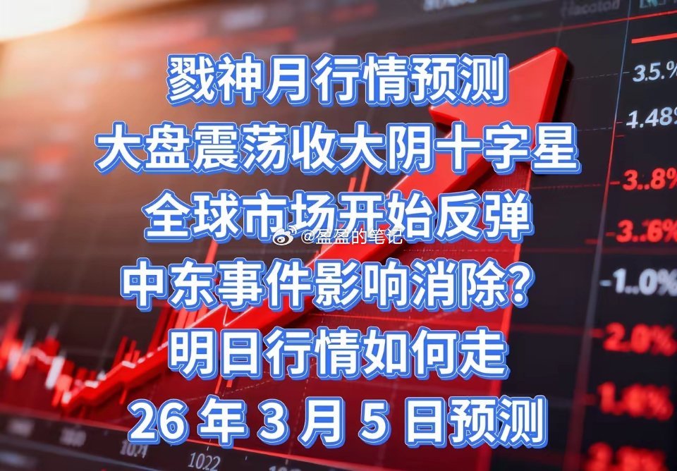 又到了对明天走势预判的时候明天,2026 年 3 月 5 日 今天大盘全天震荡,收 0.98% 大阴十字星。大盘每天的表现可以说在盘中都是有抵抗的,并不是说单方面的下跌。这其实也说明了大盘有内生性的上涨动力。 然后再看外围表现,现在外围市场都出现了反弹!多人说,你看 A 股不争气就下跌,其他股市都反弹了。还有人会考虑,这一波中东冲突的影响是不是已经消散了。 恰恰相反,经常关注欧美股市的人就知道,这些股市非常成熟,通常是吃完空头吃多头。昨天的暴力下跌,拉爆了很多多头,也给很多空头信心,很多空头加了杠杆冲进来,今天杀的就是这些空头。 很多买白银黄金加杠杆的,昨天晚上就已经被拉爆了。这就是我说的,不要去参与这些过高的市场,不是你能玩的,你以为的,只是别人想让你以为的。 欧美股市只是短暂的反弹,接下来还有调整。 言归正传,说到我们这边。今天股指期货小幅度加空!我们通过数据具体分析一下 3 月份股指期货数据某信加空 733,本月净空 24690其他玩家加空 810,本月净空 25037 双方一共加空 1543,本月还剩余 12 个交易日每个交易日需减空 4143 全年净空单数据全年双方一共加空 3816,全年净空单数据为 142326。 数据解读:从本月操作的细节来看,多单空单都减,但是多单减的数量大于空单减的数量,所以显示为加空。 多头连续两天加多单,很明显受挫,所以有些撤退。空单减的幅度也不小,是在止盈。 但是,股指期货数据架空毕竟不是好现象,说明行情要在这里停滞一段时间,并不会快速反弹。 然后我们再分析一下今天的资金流向,今天大盘资金流出 880.79 亿。主力 资金流出 667.07 亿。资金流出量已经比昨天减缓很多。下跌的动能在衰减。 截止目前,富时 A50 收涨 0.62%。 综上所述,我对明天的行情预判为,明天大盘高开高走,冲高回落收小阳线。 操作建议,仍然以观察为主,股指期货数据没有减到 10 万,不要轻举妄动,不到时候。三月下半月,将会是更加确定的时间。 欢迎大家关注、点赞加评论,我会通过股指期货数据、ETF 数据和消息面带给大家不一样的视角。