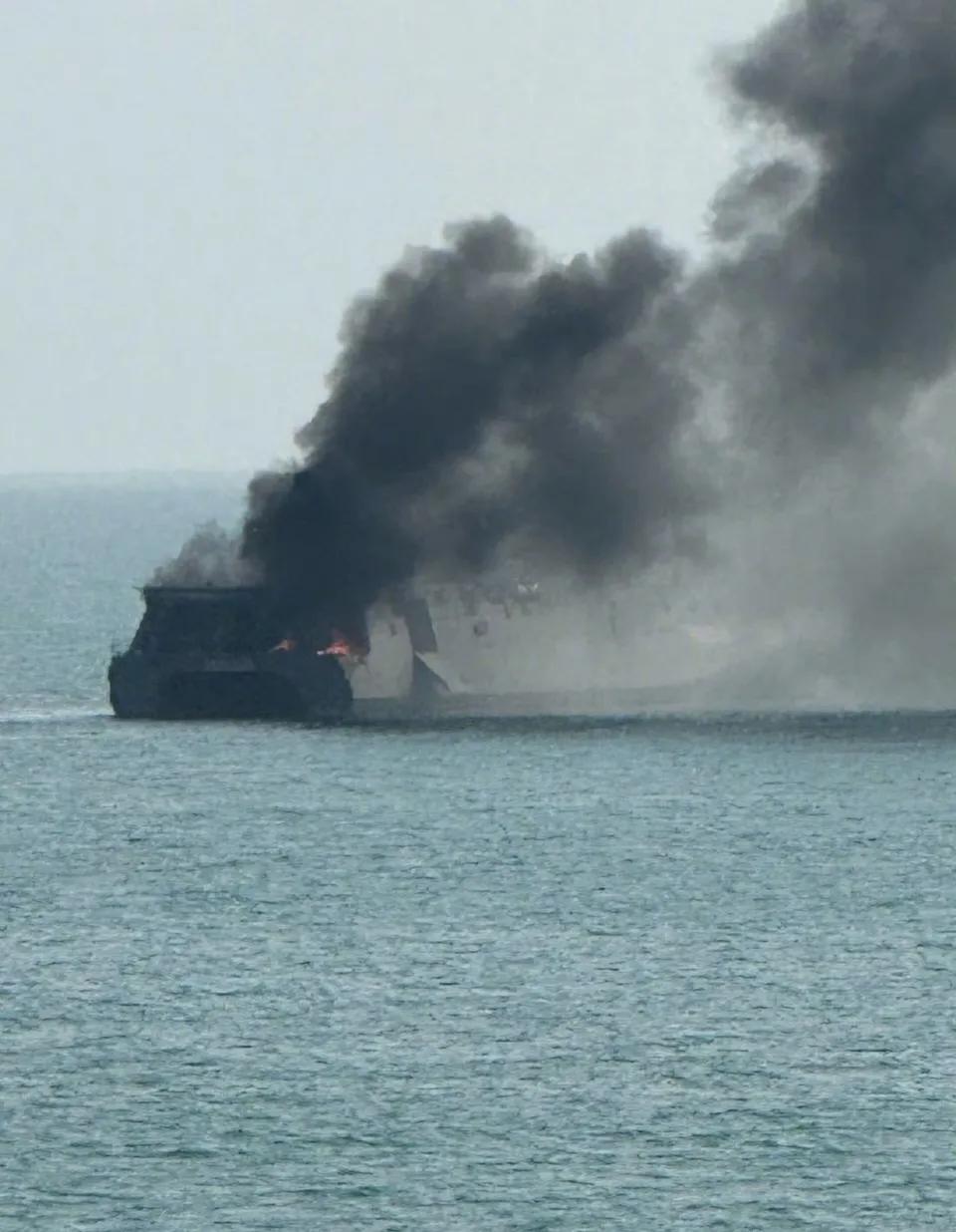 伊朗伊斯兰革命卫队海军的苏莱曼尼级护卫舰在伊朗霍尔莫兹甘省阿巴斯港遭到了攻击,黑烟冲天。 没有制空权,水面舰艇就像靶子一样,任由空中力量蹂躏。