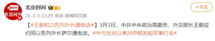 以色列主动找中国谈 北京时间3月3日,以色列终于坐不住了,一通电话打到了中国。而且这通电话是主动打过来的,中国外交部长王毅听取了以色列外长萨尔的通报,包括介绍当前局势以及未来走向,这也为接下来和平带来了更多可能。 王毅外长直接撂下三句话:赶紧停火、坐下来谈、别搞单边制裁,这可不是客套,而是直戳要害,美以联合空袭伊朗没经过联合国授权,违反国际法,必须立刻收手。 何必如此着急,一旦霍尔木兹海峡被封锁,全球约20%的石油贸易将受阻,像日本、欧洲那些依赖能源进口的国家,经济瞬间便可能面临“崩盘”之险。 更关键的是,战火一旦外溢,中资企业在中东的项目、在以的公民安全都得受威胁。 所以王毅特别强调:“军事实力不是用来打仗的,是用来防着别打仗的”,这话既戳破了以色列“军事冒险”的逻辑,又给地区安全定了调子。 此番以色列未向传统盟友美国求助,反倒寻求中国从中斡旋“说和”,这一抉择并非偶然,其背后藏着复杂考量,种种缘由耐人寻味。 内塔尼亚胡政府对美国“对俄制裁失效”与“能源求俄”的矛盾政策心存不满,与此同时,中国身为联合国安理会五大常任理事国之一,在国际舞台上发挥着重要作用。 在中东事务中始终“不选边站队”,既支持伊朗维护主权安全,又呼吁以色列克制行动,这种平衡姿态让中国成了冲突各方都能接受的调解方。 就像当年促成沙特伊朗和解一样,中国“劝和促谈”的耐心和公信力,在乱局中格外珍贵。 王毅第三句话直接关乎咱自家利益:“以色列得采取切实措施,保障中国在以人员和机构的安全”,萨尔赶紧回应:“高度重视,一定保护”,这话可不是走过场。 现在中东局势紧张,中资企业在以色列的项目、在以的华人华侨,安全都得靠两国政府兜底。 中国这些年搞“一带一路”,在中东投了不少真金白银,从匈塞铁路到瓜达尔港,哪个不是大项目,所以保护海外利益,既是外交的底线,也是大国的担当。 中国在中东的外交策略,从来不是“站队”而是“搭桥”。 通过中俄中亚管道、非洲南美航线实现能源进口多元化,手里攥着全球70%的光伏、风电产业链,油价暴涨反而让中国新能源产业“爆单”。 这种“不军事对抗却让单边行为失效”的智慧,才是大国该有的样子,未来,中东要想真正太平,还得靠“合作共赢”。 构建霍尔木兹海峡危机预警体系,以增强风险防控能力,积极推动能源来源多元化,降低供应风险,借助多边平台搭建对话沟通桥梁,促进能源领域的国际合作。 毕竟现在这年头,没哪个国家能自己扛住能源危机的代价,也没哪个国家能靠军事威慑“永享太平”,中国这通电话,既显了担当,又给了希望,这才是大国该有的样子。