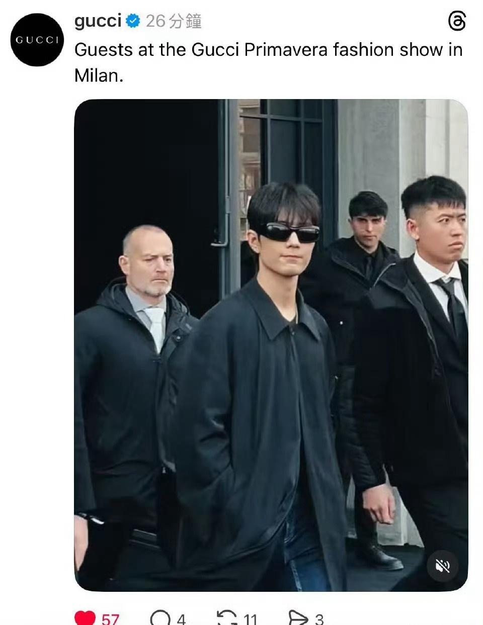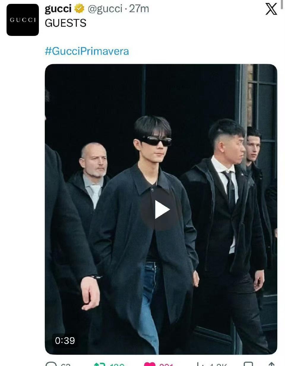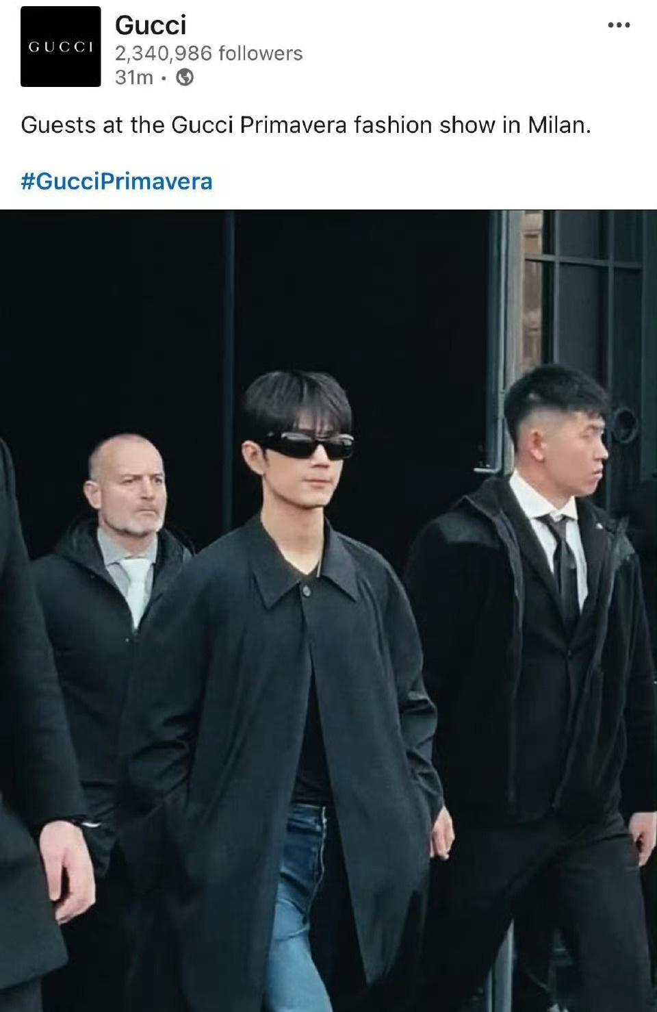 GUCCI IG、FB、X、threads、LinkedIn、YouTube shorts更新秀场明星入场合集~ 巨星肖战闪耀米兰首位出现✨肖战米兰时装周