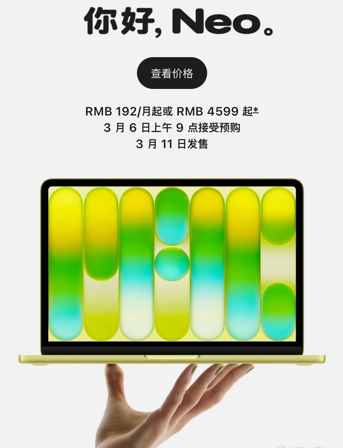 MacBookNeo定价4599元起 特么最便宜的 Mac 笔记本都没刘海,怎么贵的还那么丑刘海。