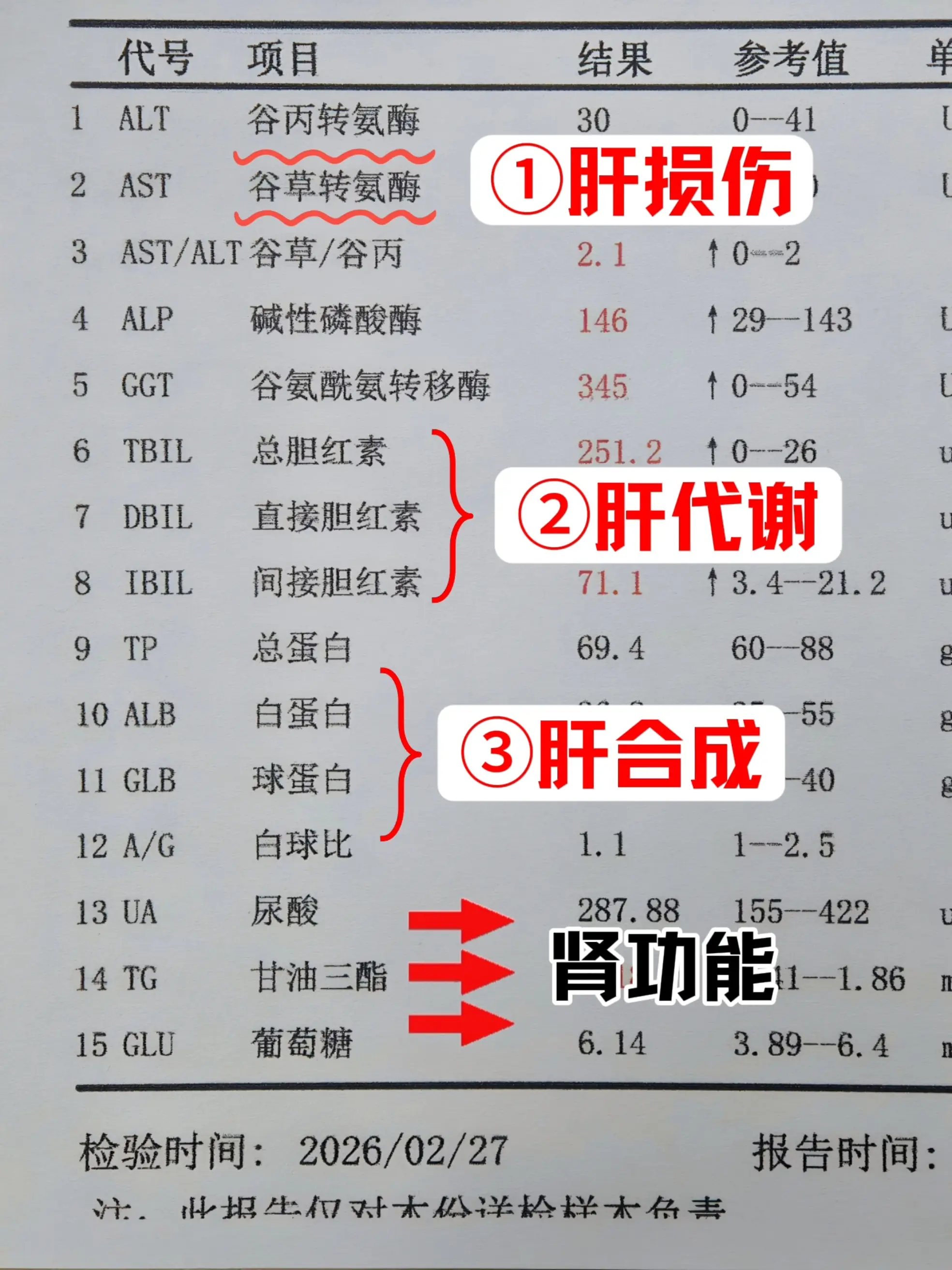 肝功能指标可以分成这几组,你是哪些指标异常?