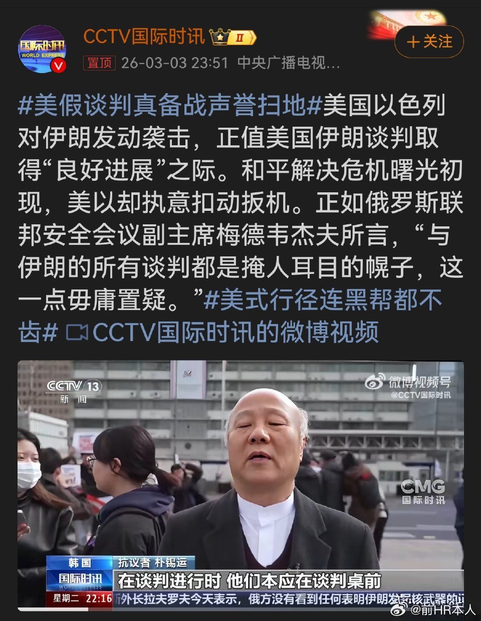 假谈判真偷袭伊朗,美国比你想的拉胯多了!长期以来,美国被包装成全球霸主、军事无敌、人类现代文明灯塔国。但这一轮美以联手对伊朗的军事侵略行动,反而把美国的底裤扒了下来。原来表面上是大国欺负小国、指哪打哪,伊朗一反击,美国立刻漏洞百出、狼狈不堪。整体一细看,美国没有大家想的那么强,比我们想到拉胯多了。第一,美国毫无道德底线,假谈判真偷袭伊朗,国际流氓又做实一点。开战前,美国摆出谈判姿态,阿曼等国证实伊朗已基本答应美方全部条件,美国却转头发动偷袭,把谈判当缓兵之计。这不是大国风范,是彻头彻尾的背信弃义。人类文明经过当代百年发展,通常不会在谈判期间发动突然袭击,否则就是国家恐怖主义了。但是美国以色列却靠欺骗发动战争,说明美国早已丢掉全球领导力,只剩霸权霸凌。这拉低了人类道德底线,提升人类的交际成本,这一点真的是人类公敌行为。第二,军事统筹一塌糊涂,基地接连失守,反导形同虚设。伊朗反击后,美军中东基地伤亡惨重,弹药库、油库、高价值雷达接连被端;甚至三套萨德系统被精准摧毁,战区反导体系直接瘫痪。特朗普一开始得意洋洋说只是三人受伤,现在发现至少死了6人、还多人失踪。美军使领馆多次遭袭、无力防护,号称全球顶尖的防空反导,在实战中根本护不住关键目标。进攻看似凶猛,防护千疮百孔,指挥协同、预警防御全线拉胯。连美国CIA都被报道撤出伊朗导弹可以打到的地区。第三,美国在中东王牌装备接连翻车,航母仓惶后撤,武器神话破灭。美军F-15在科威特被击落至少3架,驱逐舰、补给舰被击中起火,核动力航母不敢靠前,后撤300公里避险。花天价打造的海空装备,面对导弹与无人机饱和打击,抗毁、抗突袭能力不堪一击。过去吹上天的美式装备,在真实战场一碰就碎。所以以前美国人靠打小朋友扬名,现在伊朗这种中等国家一出手居然就捉襟见肘,不堪一击的感觉。如果伊朗有100架歼10,500枚PL15,那这次美国和以色列真的吃不了兜着走。第四,以色列反导彻底露怯,高超音速导弹拦不住、无人机打不完。全套美制装备、加上所谓专门研究反导的以色列,多层反导神话沦为笑话。面对伊朗高超音速导弹,拦截率为零;连低成本无人机都无法有效清剿。所谓“铁穹、箭-3”,只对低速目标有用,面对高速机动突防,完全失效。美国输出的所谓“安全屏障”,就是一张一戳就破的纸。连乌克兰泽连斯基都跳出来要教他们打无人机的经验了。这场冲突把美国打回原形,所谓文明灯塔,无敌霸权,不过是靠打小国威慑与宣传撑起来的泡沫。伊朗用实力证明,美国不是打不赢、碰不得,一遇硬茬就破绽百出。所以,现在别再迷信美国有多强,它比你想象的更拉胯。霸权终有尽头,实力才是硬道理。美国去工业化同时,军事技术也同样在消退,所谓皮之不存毛将焉附就是这样;美国的拉胯,将会越来越明显。