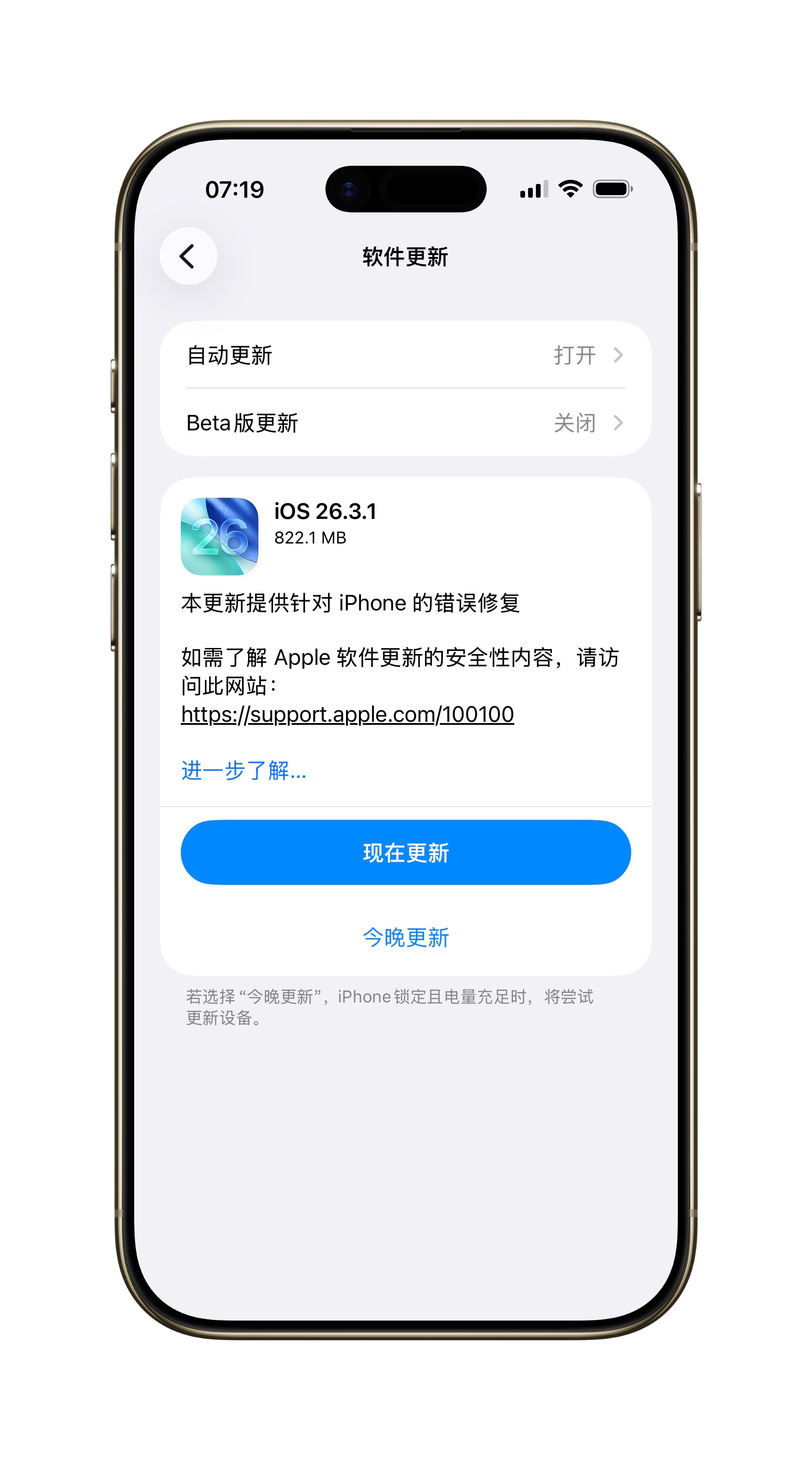 iOS 26.3.1 ,修复bug。主要是给iPhone 17e准备的吧~