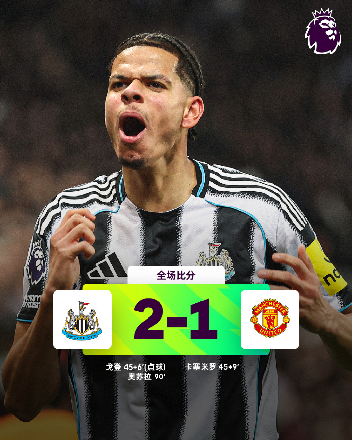 纽卡斯尔联2比1曼联英超联赛第29轮曼联挑战纽卡的比赛在圣詹姆斯公园球场进行。上半场特里皮尔开场传中中柱,拉姆塞两黄一红被罚下,B费送点,戈登点射破门,B费将功补过助攻卡塞米罗头球扳平,半场结束,曼联1-1纽卡。下半场拉姆斯代尔屡献精彩扑救,奥苏拉世界波绝杀。最终曼联1-2十人纽卡近12轮首败仍居第3,卡里克遭遇上任首败。逸达看球