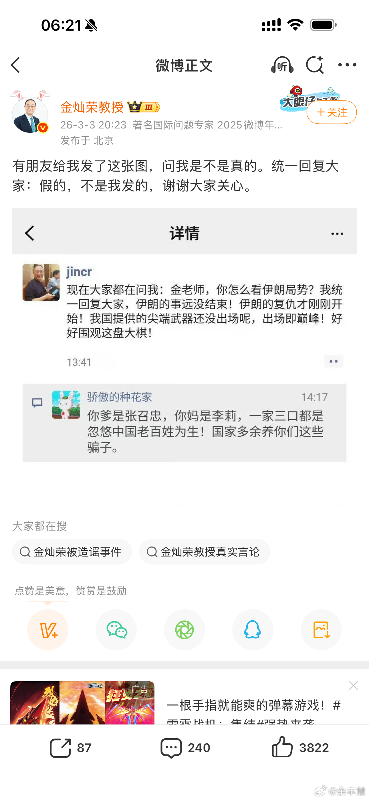 金灿荣老师统一回复,彻底澄清了!海外传的太厉害了!余丰慧