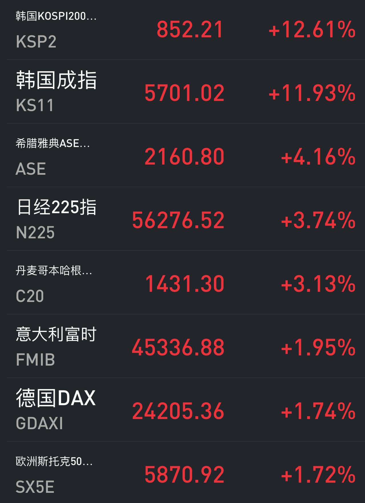 韩国成指大涨10 %以上,日经股指暴涨4 %左右,危机暂时缓解。 继欧美市场企稳之后,今天开盘的亚洲股市实现普涨,之前非理性暴跌的日韩市场迎来大涨,尤其是韩成指,大涨超过10 %,几乎收复了一半失地。 过度依赖国际市场,受到能源成本大幅增加的影响,日韩市场是此次神仙打架、小鬼遭秧的典型。 看来,我们的新能源战略还是有一定成效的。