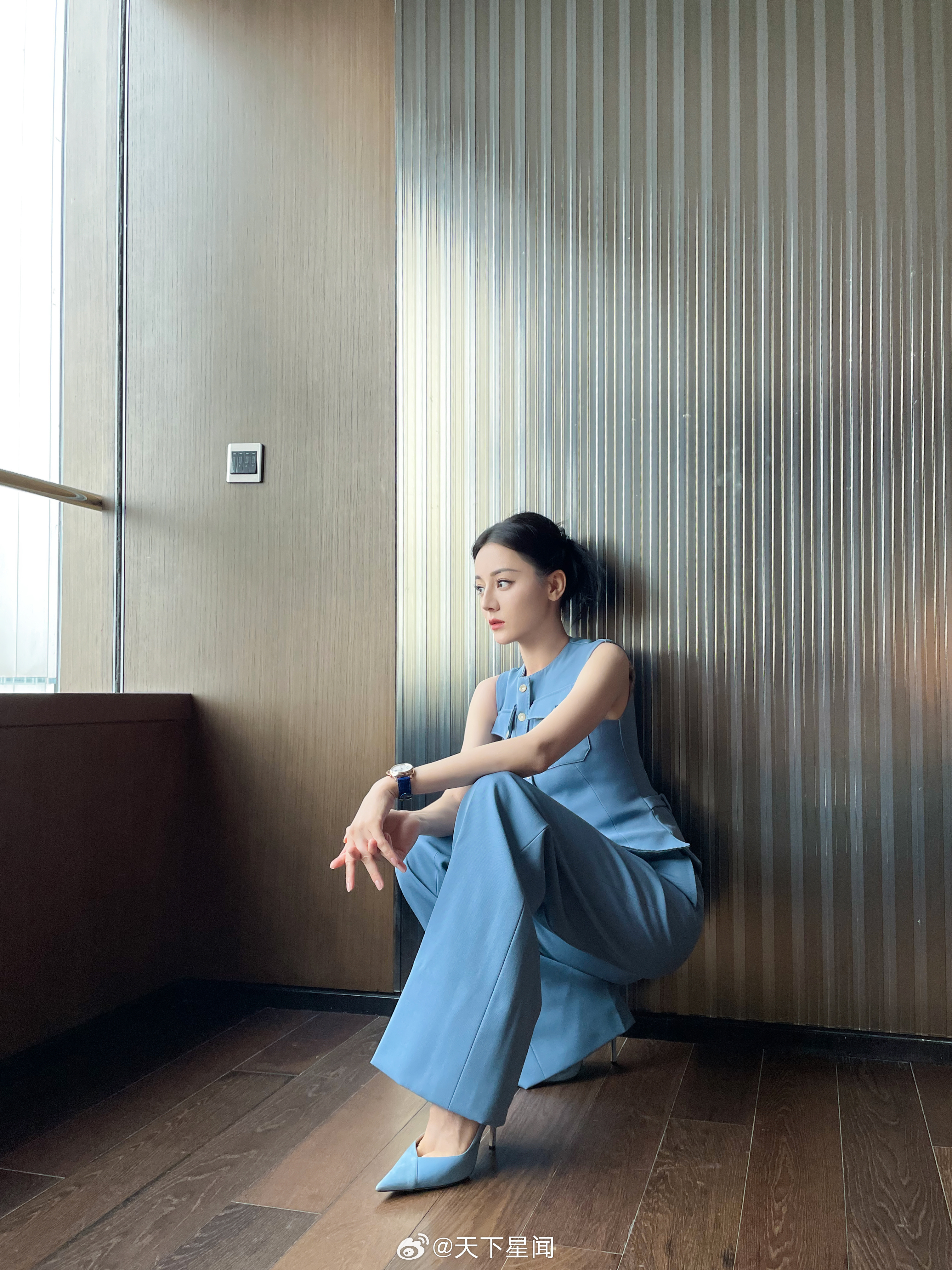刘亦菲这条裤子挺养生,毕竟降温了肚脐眼必须护住啊