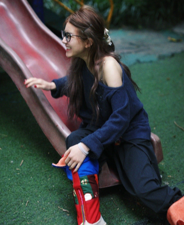 刘亦菲这条裤子挺养生,毕竟降温了肚脐眼必须护住啊