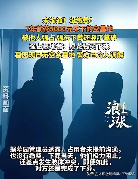 “必须严惩!”江苏,一对老人看中了一块墓地,子女为了让老人安心,便花5000元提前买下,谁知过了几年,他们发现墓地被别人占了!关键对方既没沟通也没缴费,如今墓园已没有空余墓地,双方酿成纠纷! 闵先生岳父岳母身体一向不怎么好,彼时已经近80岁高龄了,老人的意思是提前把墓地选好,到时他们过世了也不用临时去找,免得手忙脚乱。 两位老人年近八旬又体弱多病,提前置办身后事,不过是想求一份踏实与心安。 子女掏这笔钱,买的不是一块空地,是对长辈的孝心,也是对传统习俗的敬重。 谁能料到,这份平平淡淡的心愿,竟被人硬生生打破,换谁都会怒火难平。 占墓的人实在过分,既没跟闵家打一声招呼,也没向墓园缴一分费用,纯属强行霸占。 墓园工作人员当场出面阻拦,还差点发生肢体冲突,依旧没能拦住对方的蛮横行为。 事后还想拿钱搪塞,完全不顾及他人的合法权益,这样的做法既失德又违法。 墓园的管理漏洞更是让人无法接受,收了业主的钱,就该守好业主的权益。 已售出的墓地被外人轻易强占,足以说明日常巡查、登记管理全是形同虚设。 更糟的是墓园已无空余墓位,连最基本的调换补救都做不到,失职问题一目了然。 按照法律规定,合法购买的墓地使用权受严格保护,私自侵占已构成民事侵权。 占墓者必须迁出墓穴、恢复原状,还要赔偿对方的经济与精神损失,这是法定责任。 墓园管理失责,同样要承担违约赔偿,不能用“拦不住”三个字就推卸全部责任。 两位老人得知墓地被占,心里的不安与委屈难以言说,他们要的从不是赔偿。 只是想守住自己看中的归处,不想让子女的一片孝心,被无赖行径白白糟蹋。 入土为安是刻在国人骨子里的执念,这份情感寄托,容不得任何人随意践踏。 最让人寒心的是,守规矩的人蒙受损失,胡搅蛮缠的人反倒理直气壮。 公序良俗不是摆设,法律底线更不能触碰,这种恶意侵占的行为必须严厉制止。 只有依法严惩侵权者、追责失职方,才能守住公平正义,不让老实人吃亏。 各位读者你们怎么看?欢迎在评论区讨论。
