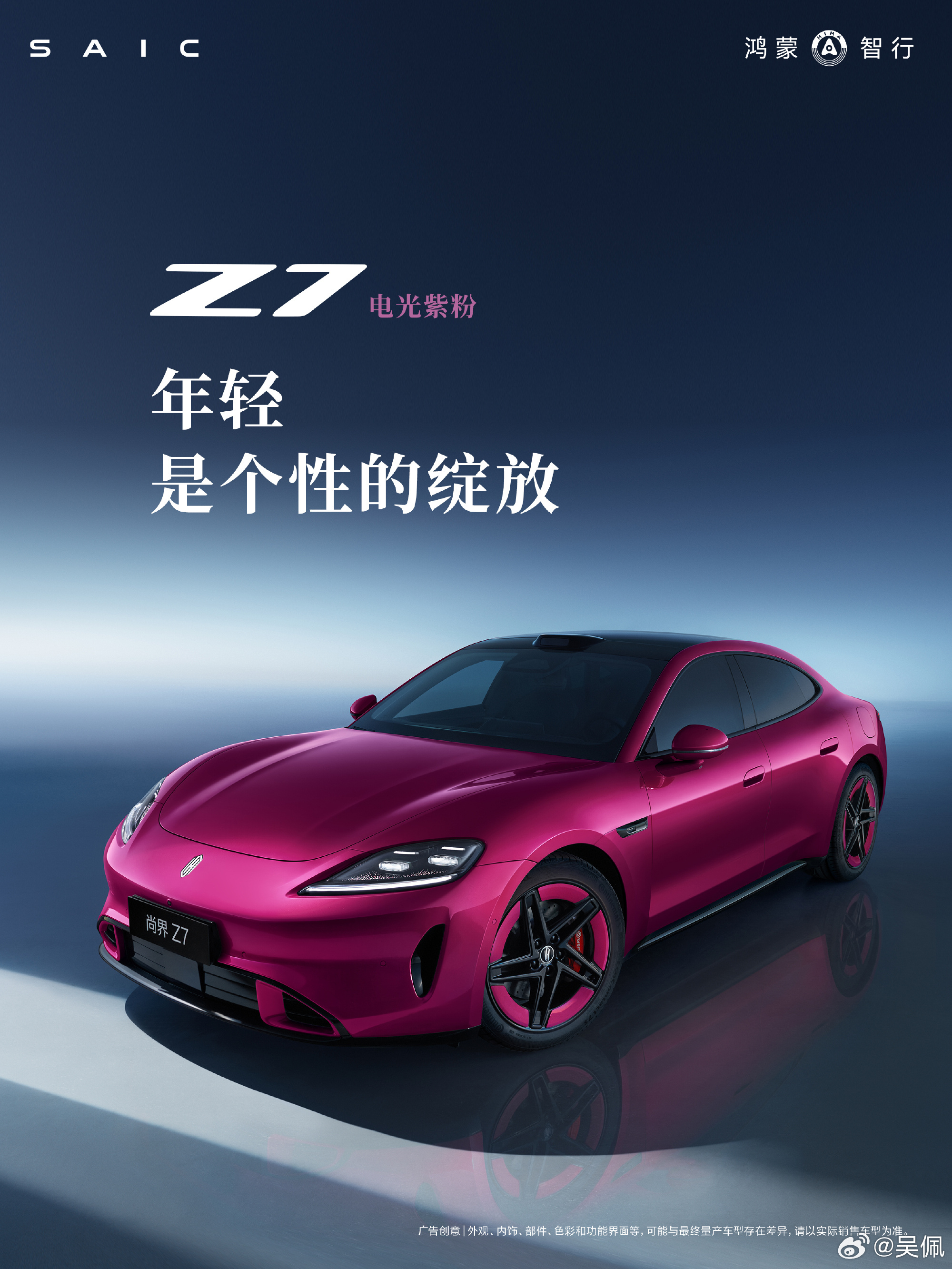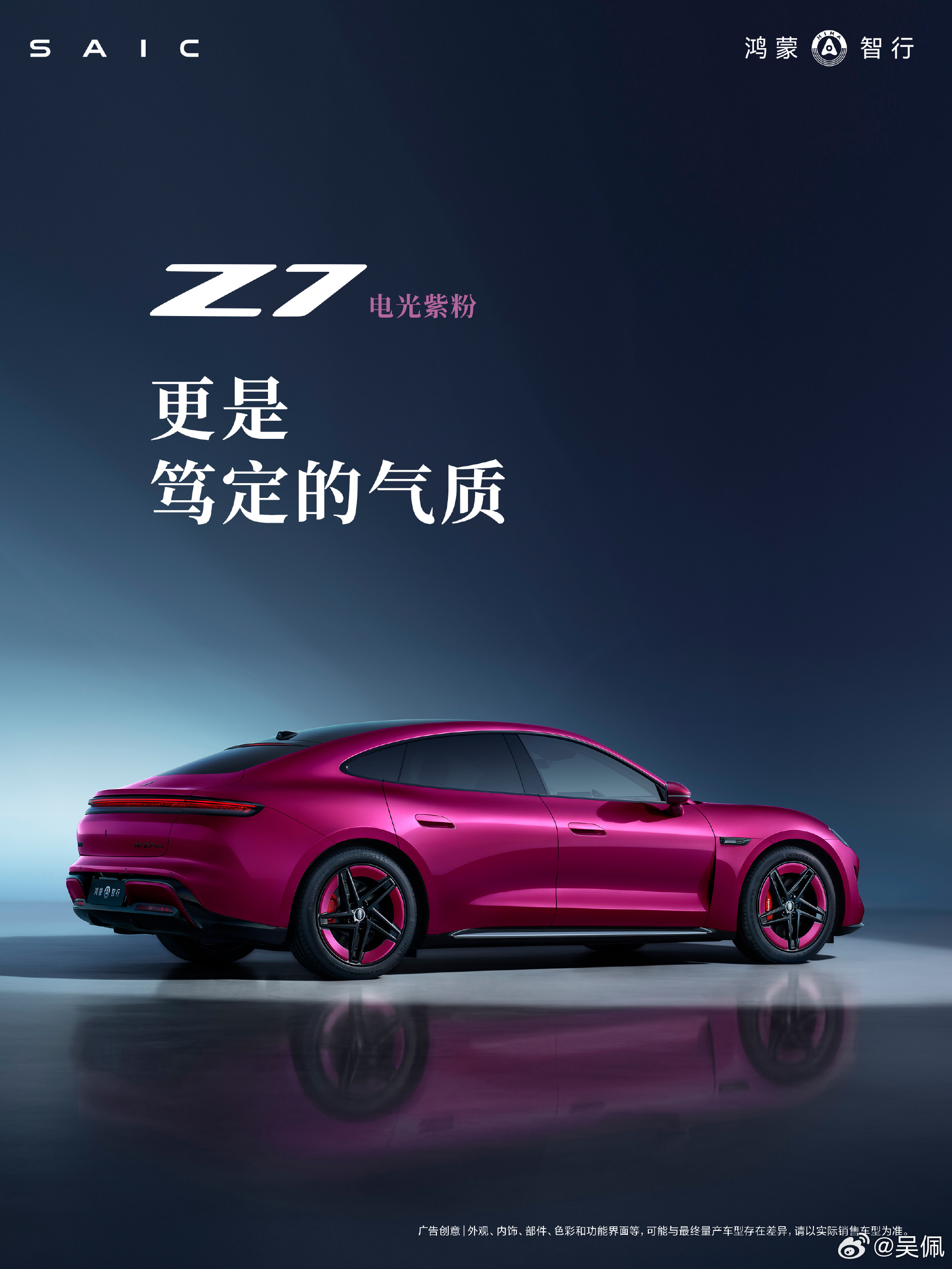 尚界Z7和尚界Z7T的电光紫粉,琥珀金绿,晚山新绿都很亮丽,如果你是产品经理,第四种颜色,你会出_______。鸿蒙智行技术焕新发布会