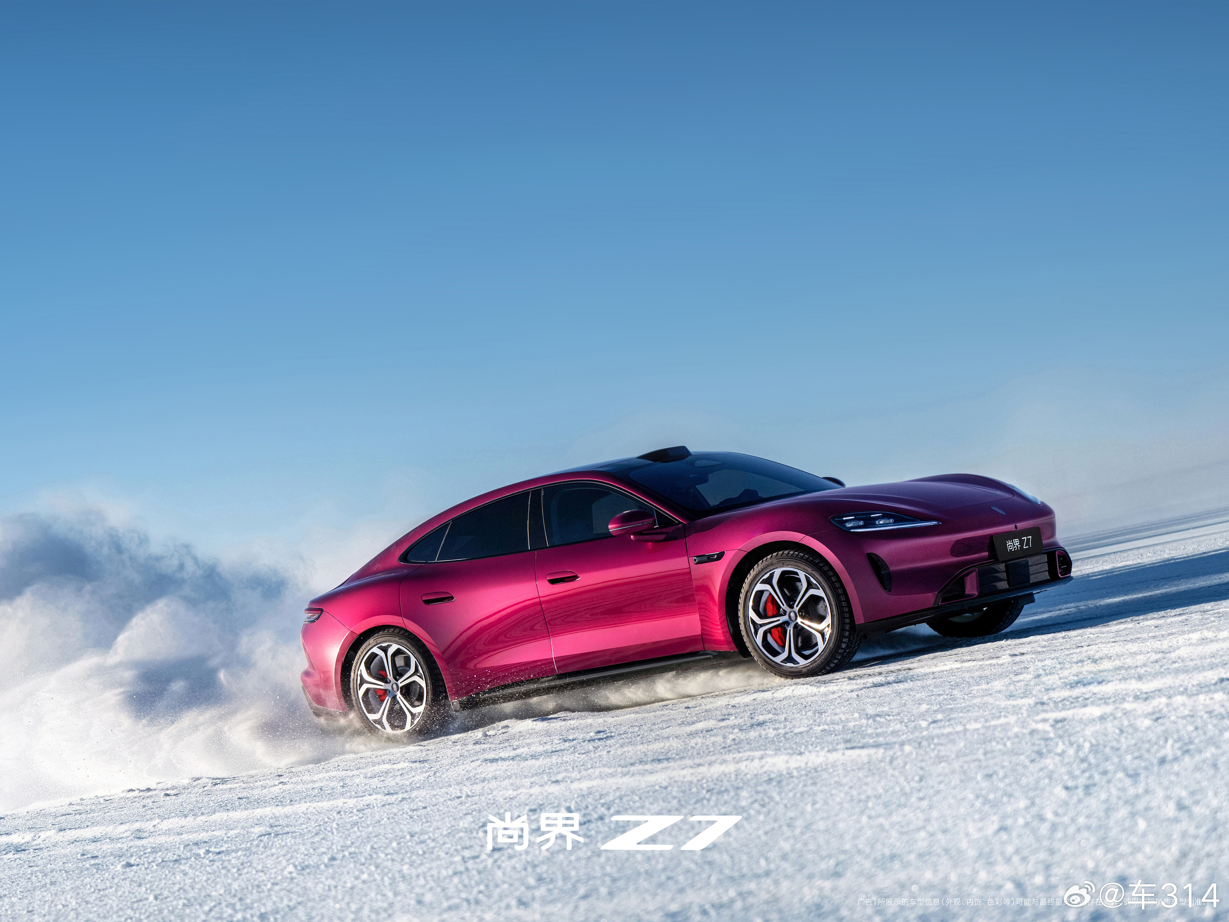 电光紫粉这个颜色,从图中来看确实是很闪亮,就像电镀贴膜的感觉似的,但直接做成了车漆,质感肯定要更棒,比较期待实车观看的效果。然后还有晚山新绿、琥珀金绿,都是非常亮眼的色泽,看来尚界Z7与Z7T确实是给年轻人打造的车子。现在最关注的就是价格了,希望能有一个非常给力的、让人无法拒绝的好价,盲猜一手16.99万交个朋友?尚界Z7冰雪大片尚界Z7电光紫粉尚界Z7尚界