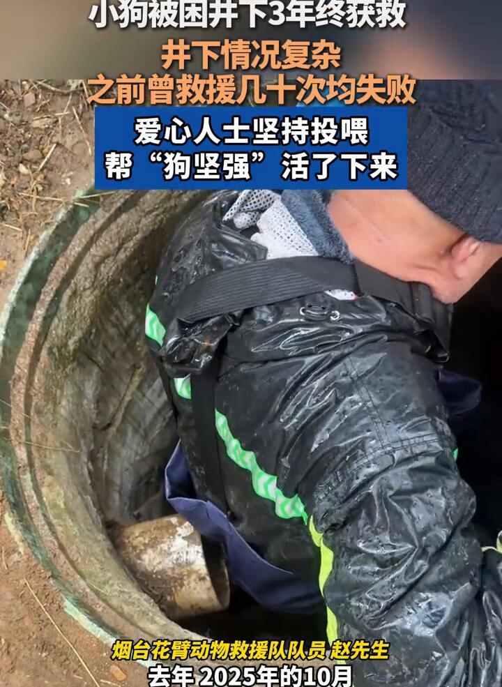 山东烟台有条狗,掉井里困了将近三年,最近终于被救出来了。 说实话,这事儿听着都离谱。井又深又窄,好几波救援队之前都没成功,谁都以为它活不成了。没想到,附近的居民这几年一直往井里扔吃的,硬是把它给“喂”活了。最后救援的赵先生他们设了个巧妙的机关,才总算把它弄上来。 狗是救出来了,但想想它在暗无天日的井底待了三年,心里挺不是滋味的。大家当然要感谢那些一直投喂的好心人,没他们这狗早没了。可反过来想想,为什么拖了三年才救出来?是之前办法没想对,还是重视不够? 我觉得,民间有爱心是好事,但光靠投喂治标不治本。这次是运气好,狗活下来了,下次要是别的动物呢?更关键的是,得有更高效的专业救援机制。遇到这种事儿,谁能最快联系到靠谱的救援队?怎么协调资源?这比单纯夸大家“有爱心”更重要。 有人可能觉得,不就是条狗吗,至于这么兴师动众?但生命就是生命,能救而不救,心里过不去。而且这次救援积累的经验,万一以后有小孩或者大人遇险,说不定就能用上。 总之,狗获救是温暖的结局,但也暴露了问题。希望以后不光有热心市民,还能有个更顺畅的求助和救援通道,让这种“坚持三年”的悲剧别再发生了。