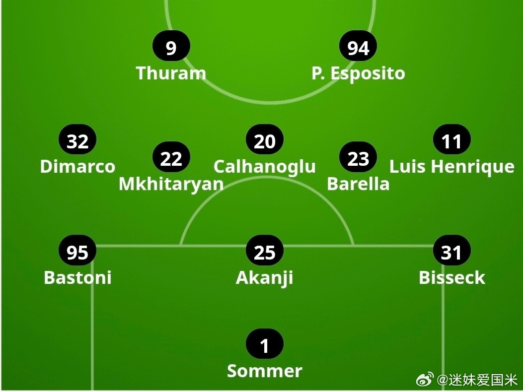 米兰体育报预测国际米兰首发阵容,邓弗里斯和泽林斯基替补。国际米兰意甲米兰德比