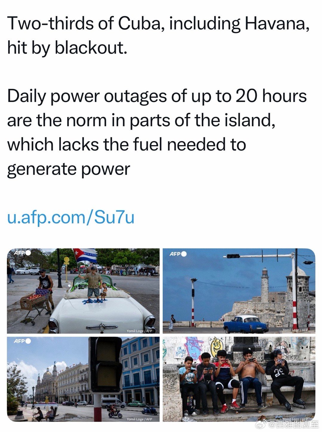 由于缺乏发电所需能源,🇨🇺部分地区,每天停电二十小时是近期常态