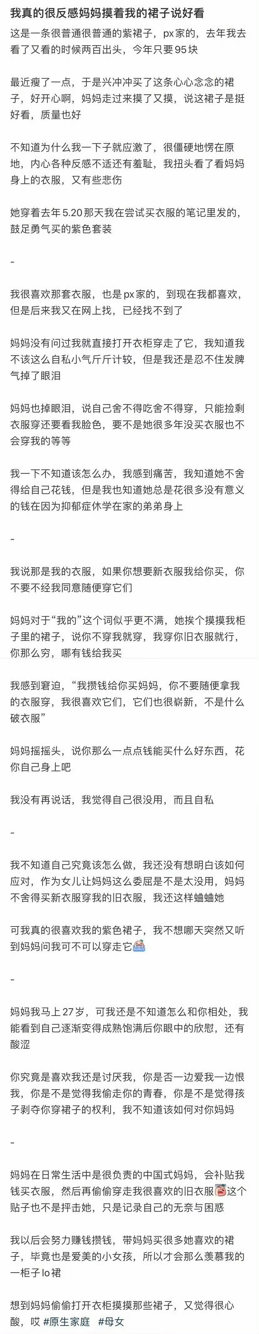 我真的很反感妈妈摸着我的裙子说好看