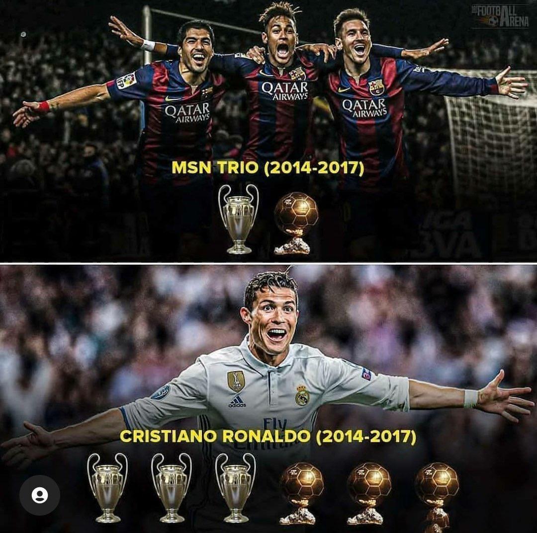 讲道理2014年-2017年,C罗强于梅西! 本来C罗就2008年一个金球奖,那期间3个金球奖,要不是离开皇马2018年也能拿金球奖。 而梅西只在2015年有个欧冠冠军,那年金靴是内马尔,梅西还属于躺冠。 那会C罗真强于梅西,可惜随后离开皇马,一切都没有了。[快哭了]