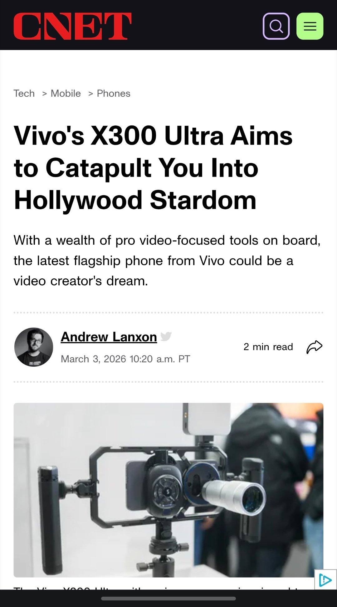 MWC亮相后,外媒cnet记者说“X300 Ultra 让你成为好莱坞明星”。