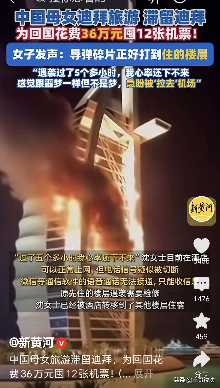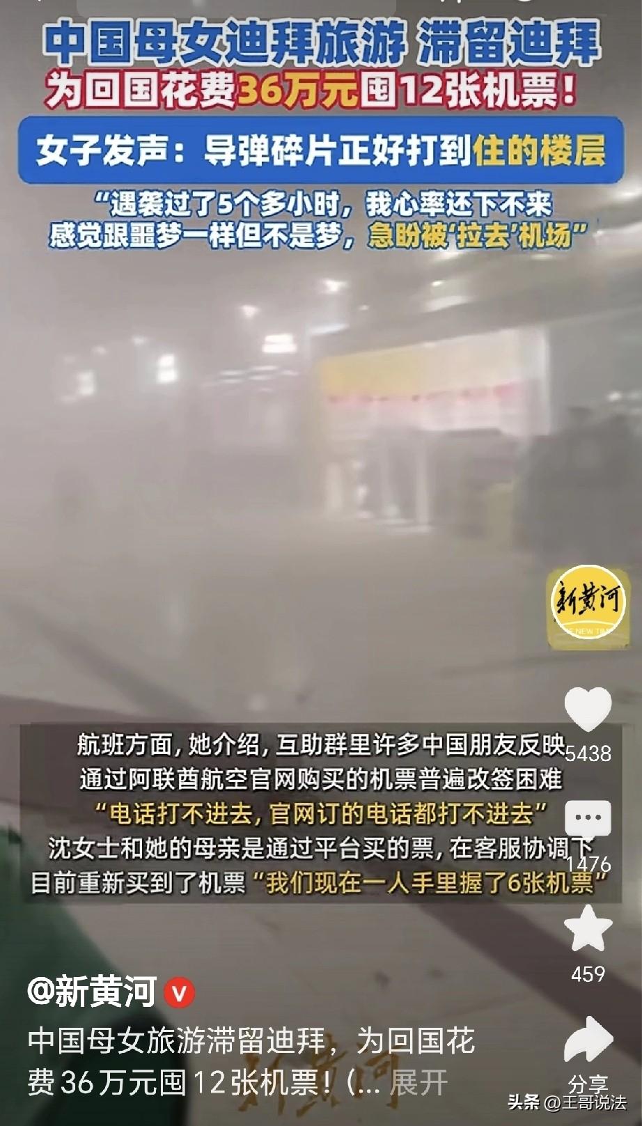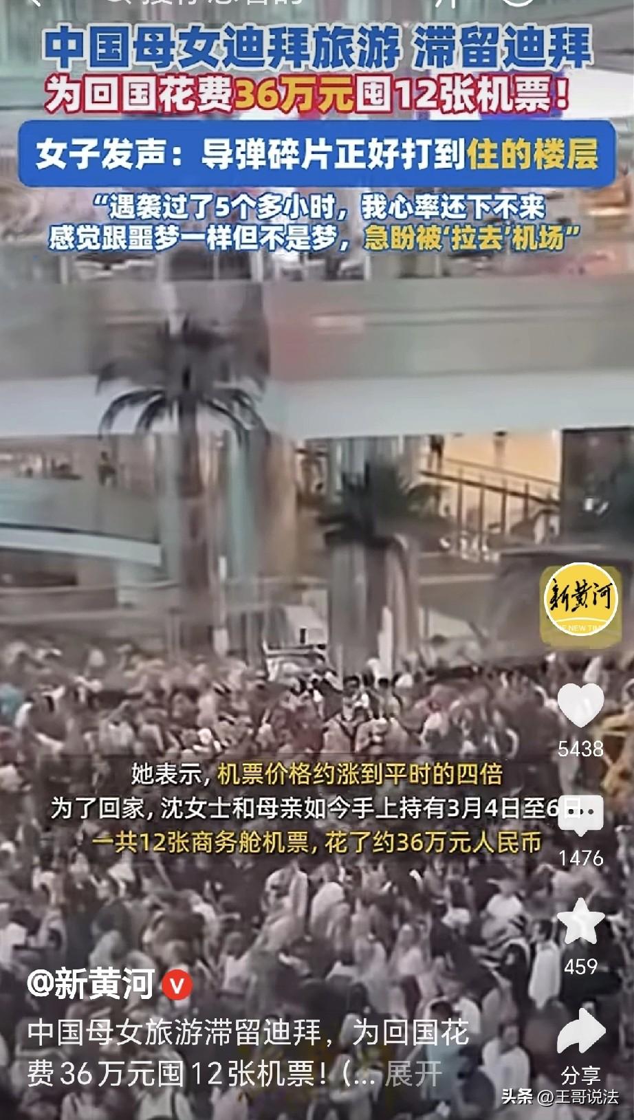 “命比钱重要!”一女子和母亲来迪拜旅游,本打算3月7号回国,没想到导弹碎片打到她们住的楼层,女子拉着母亲,抓起钱包护照就往外跑跑,她心率飙升,一看机票,涨了4倍,女子豁出去了,为尽快回来,花36万买了12张机票,机票是3月4日-3月6日12的,坐上哪个是哪个!钱多没用,先保命再说! 沈女士为了尽孝,带着母亲到迪拜旅游,她们原定的计划是2月27号~3月7号。 她们到了迪拜,入住了帆船酒店,领略到奢华和顶级的酒店服务。 她们略作休息,就出门游逛,这里是购物的去处,各种奢侈,各种折扣,购物的滋味,特别的舒服。 这里有繁华的街道,也有独特的建筑, 有世界第一高楼,828米,这里有沙漠,早上冲沙,骑骆驼,这里有大海,下午冲浪,坐着游艇,在海面掠过。 母女俩开了眼界,忘记了烦忧,沈女士看母亲高兴,多少钱都花得值得。 可万万没有想到,3月1日凌晨,这是当地的时间,母亲在睡觉,沈女士在看新闻。 可是突然,沈女士听见轰隆一声,导弹碎片打到她们楼层,顿时火光冲天,房间的玻璃哗啦碎了。 沈女士急了,顿时心跳过速,她拉起母亲,母亲睡眼朦胧,俩人愣了片刻,不知道此时发生了什么。 这时,房间里警报响了,不是演戏,而是酒店里紧急疏散的警报。 沈女士急了,她拿起护照钱包,一手拉着母亲,别的啥都不顾不上了,俩人赶紧就往外跑。 她一边跑着,一边懵圈,没想到这一趟迪拜之旅,遇到了导弹的突袭,这是她在电视里才能看到的事情,这回算是体验到了。 她慌慌张张,鞋子都要跑掉,那种感觉真跟做噩梦一样,但是这是真实,它不是梦,那颗导弹的碎片,成了沈女士再也挥不掉的阴霾。 她们在酒店外待了一个小时,之后又回到酒店,5小时后,沈女士心还在砰砰跳着,心动过速,根本降不下来。 之后,她和母亲被转到了别的楼层,她惊魂未定,这才知道,战争是多么的可怕! 沈女士看局势变化,不能再逛下去了,她立刻将航班改到3月2日,这个时候,她想家了。 可此时此刻,阿联酋领空已经关闭,民航的航班被陆续取消,沈女士越想越怕,她翻开手机,打开游客互助群,又看看本地新闻,希望能够捕捉到机会。 沈女士急了,为了回家,她豁出去了,她一看机票,顿时被惊呆了! 此时此刻,机票已经涨价4倍,可是尽管如此,命比钱重要! 沈女士花了36万,一口气买了12张商务舱的机票。 这12张机票的期限,是从3月4号~3月6号,沈女士心想,管它多少钱,订到就好! 沈女士表示,她现在的希望,就是能早点去机场,早点登机,早点回归到祖国的怀抱。 有人调侃,俺没钱,哪都去不了! 也有人说,这时候感觉穷也没有多么不好,最起码能在家里安稳过春节。 更有人说,难道提前不看新闻吗?总算是见到世面了,还是最惊心动魄的体验之旅! 可事已至此,说啥都已经晚了,只希望滞留在那里的同胞,都能平安回到祖国。 沈女士惊恐未定,承受了巨大的恐惧,就在导弹碎片击中楼层那一刻,她和母亲的生命陷入了绝境,恐惧瞬间将人淹没。 在战争的阴影下,什么奢华享受、购物愉悦都瞬间化为泡影,唯有生存成为最迫切的渴望。 在战争和生命面前,金钱显得如此苍白,只要能保住生命,花再多钱都无所谓。 我们生活在和平的国度,或许有时会觉得平淡无奇,但与那些身处战乱地区的人们相比,这是何等的幸运。 愿世界再无战争,让每个人都能在安宁中享受生活,生命一消失,再多钱也没用! 《民法典》第180条规定:因不可抗力不能履行民事义务的,不承担民事责任。法律另有规定的,依照其规定。 沈女士和母亲因特殊原因无法按原计划回国,与旅行社、航司的旅游合同若无法履行,双方都可以解约,不需要赔偿违约金。 对此,你怎么看?