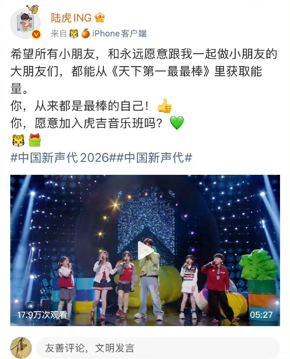 陆虎和5个三年级小朋友写了首歌 被陆虎狠狠圈粉!和三年级小朋友一起创作,更把歌曲版权送给孩子们,用实力写歌、用真心守护梦想。每周锁定《中国新声代2026》,感受最治愈的音乐力量。