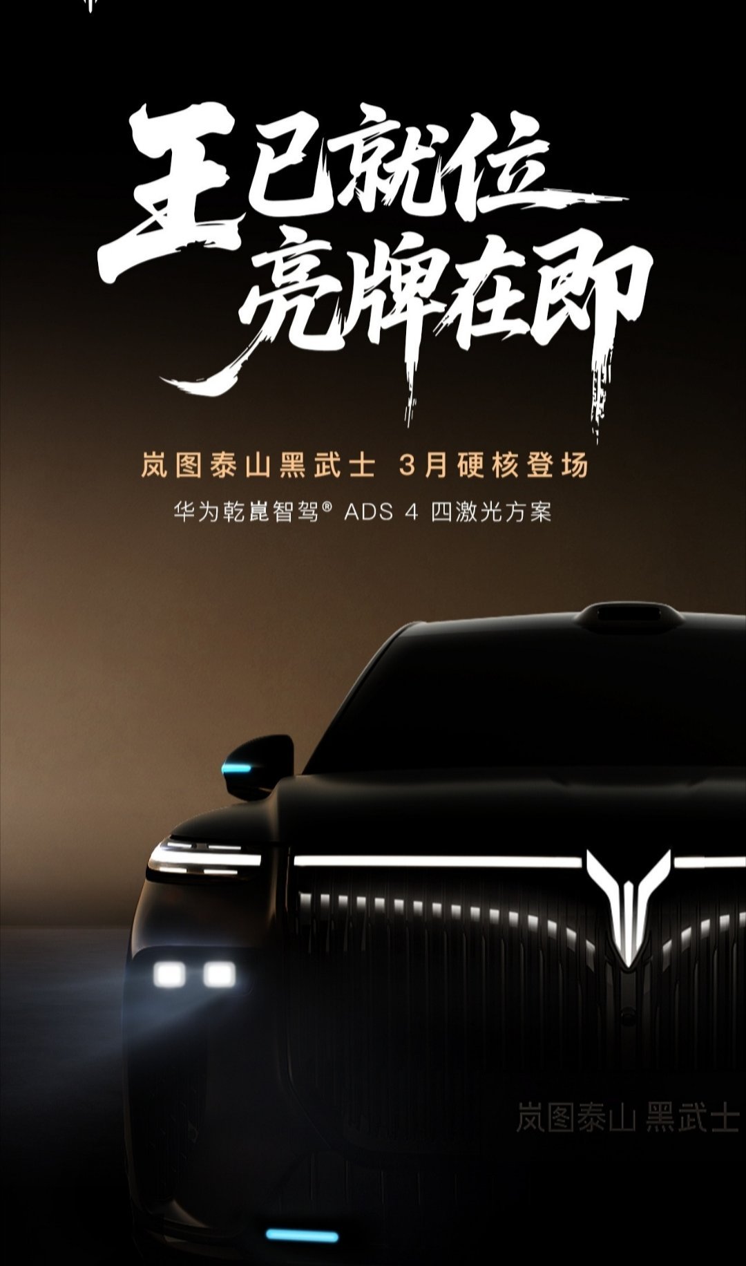 今年 2 月,岚图汽车科技股份有限公司董事长卢放宣布,3 月,中国首款量产 L3 级 SUV —— 岚图泰山黑武士将正式上市。
