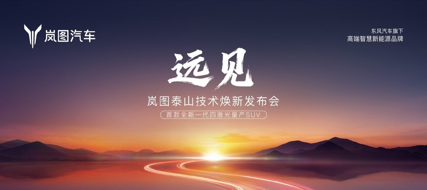 岚图汽车官方在微博预设了岚图泰山技术焕新发布会 ——《远见》的直播,宣传图显示,岚图汽车将带来首款全新一代四激光量产 SUV。