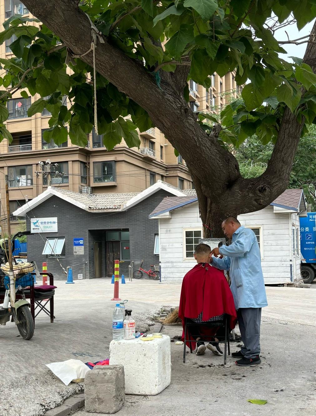 就一张凳子,一面镜子,一个头发全白的老头儿,正给另一个老头儿理发。推子慢慢推,剪刀细细剪,太阳从新长的嫩叶缝里漏下来,落在地上的碎头发上,亮晶晶的。 “今儿不是学雷锋日嘛,我也就会这点手艺。”他笑着说。 镜子里,理完发那老头摸着后脑勺,也笑了。俩人都没再说话,就听见风吹着槐树叶子哗啦啦响。 我站那儿看了半天,忽然想起来,三十年前他也是这么给我理发的。那时候他还不老呢,我才这么点儿高。 雷锋日就这一天,可他这摊子,逢五逢十都在。镜子里的笑脸,一年又一年,就没断过。 原来学雷锋,也不是非得干多大的事。就是手艺还在,人心还在,就是这老槐树一年年地绿,树底下的人,心里头都亮堂着呢。