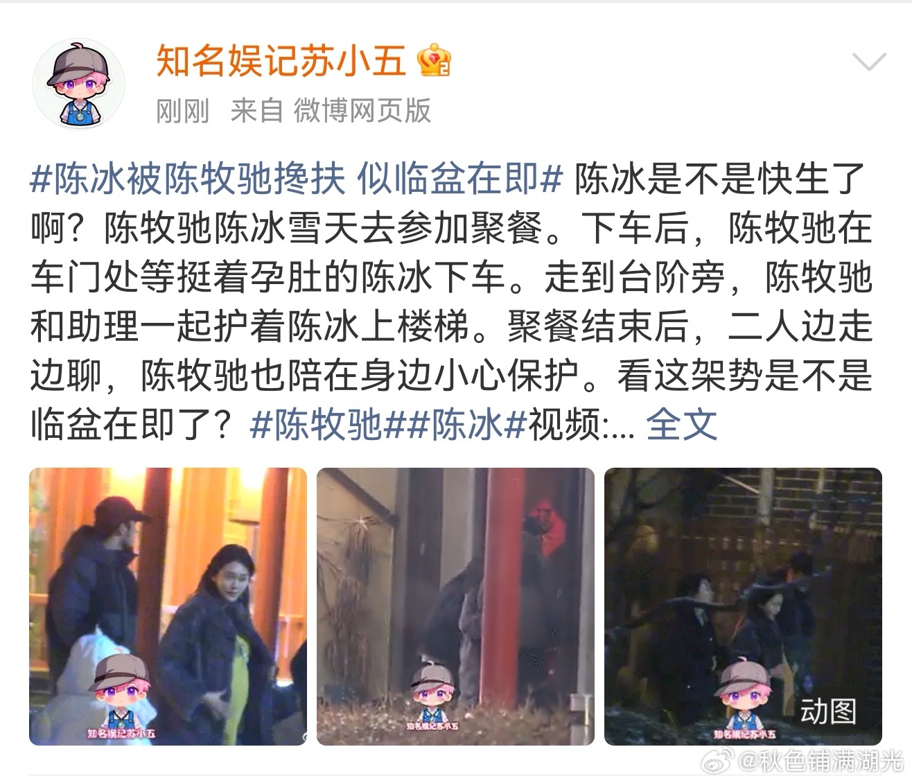 曝陈冰快生了陈牧驰扶陈冰上台阶 有娱乐自媒体拍到陈冰陈牧驰外出聚餐的时候,陈牧驰扶陈冰上台阶,看样子,陈冰好像快生了。