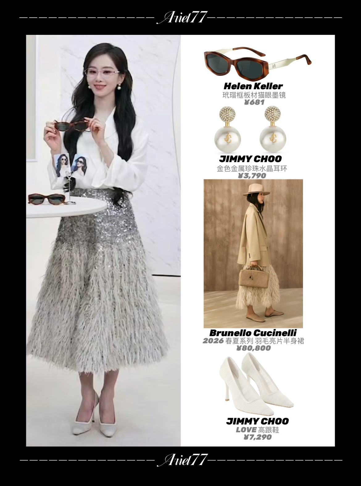 刘诗诗直播刘诗诗虽然已是5奢全球代言人,其中成衣线,CELINE高奢,Self-Portrait轻奢,居然还能穿意大利顶奢成衣Brunello Cucinelli,一姐还真是穿衣自由