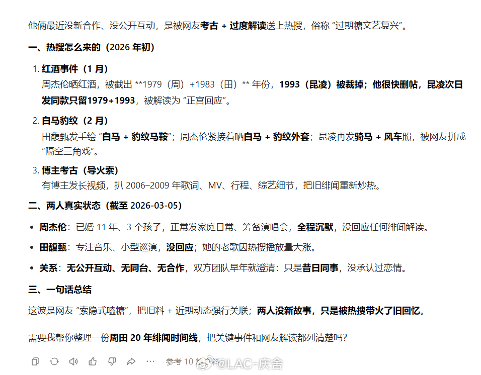 周杰伦 田馥甄 最近娱乐圈新瓜旧瓜一起吃看了一下才知道其实就是一段古早回忆,被网友显微镜式解读。青春归青春,现实归现实,理性吃瓜就想问周董还拍不拍赛车电影了?