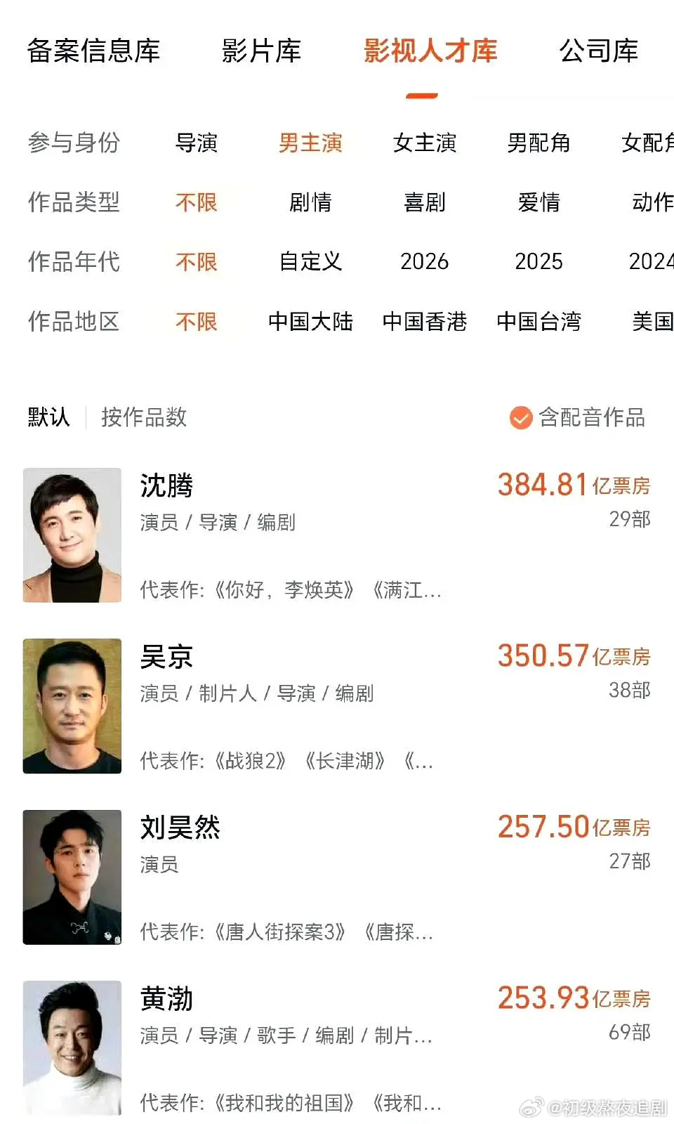 刘昊然票房已经超过黄渤,离沈腾吴京都不远了