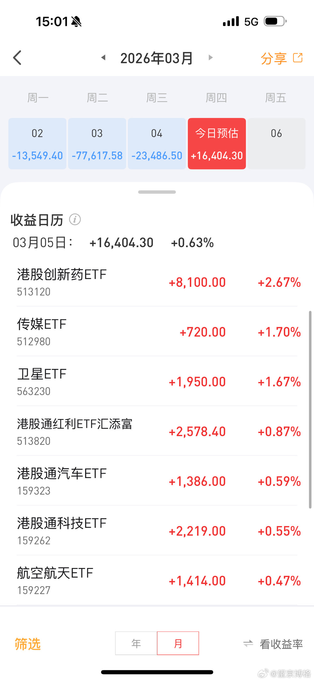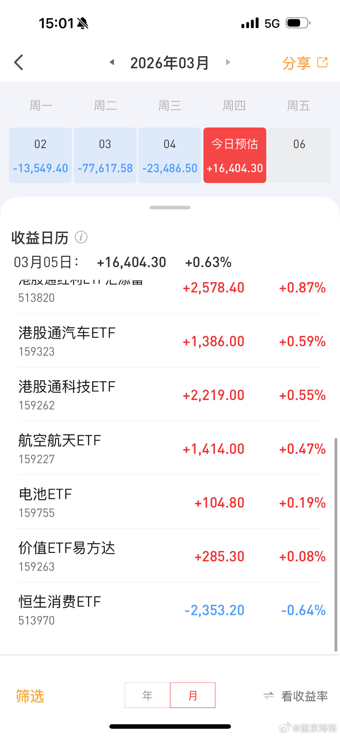 今天终于不跌了,etf账户赚了1.6万喜欢看博格晒实盘的,点赞支持了恒生科技基金